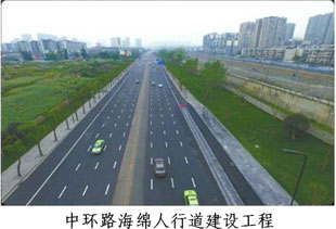 编制了《成都市海绵城市建设专项规划》,以自然积存、自然渗透、自然净化为原则,合理采取渗、蓄、滞、净、用、排等措施,逐步实现城区小雨不积水、大雨不内涝、水体不黑臭、热岛有缓解。成都市中环路作为我市第一条按海绵城市理念进行设计的城市道路,海绵人行道的建设引人关注。中环路海绵人行道建设工程全线42公里,项目分两个阶段实施。第一阶段先行对具备实施条件的26公里道路进行建设;第二阶段开展剩余16公里道路的恢复提升建设。目前,首两段“海绵人行道示范段”已投入使用,分别是全长约800米的锦华路-锦江段、全长约1200米的迎晖路-岷江路。海绵体人行道比普通人行道增加了20%-30%的储水能力,人行道下面还设置有与市政雨水管道相连的雨水收集管道,这些收水管道还与周边的绿化带相连,为植物提供水分,甚至可以打造符合城市景观要求的“雨水花园”。以构建环城海绵体为重点的成都市绕城高速两侧200米环城生态景观建设目前已基本完成,其中生态湖泊水系规模达28平方公里, 而生态湖泊水系中,6个生态湖泊及8片集中水生作物区集蓄雨水、净化水质,形成环城生态区的骨架,最终形成环状、水韵悠长、绿意盎然、独具特色的大都市湿地景观,成都中心城区的水面比例从1.8%提高到6%。