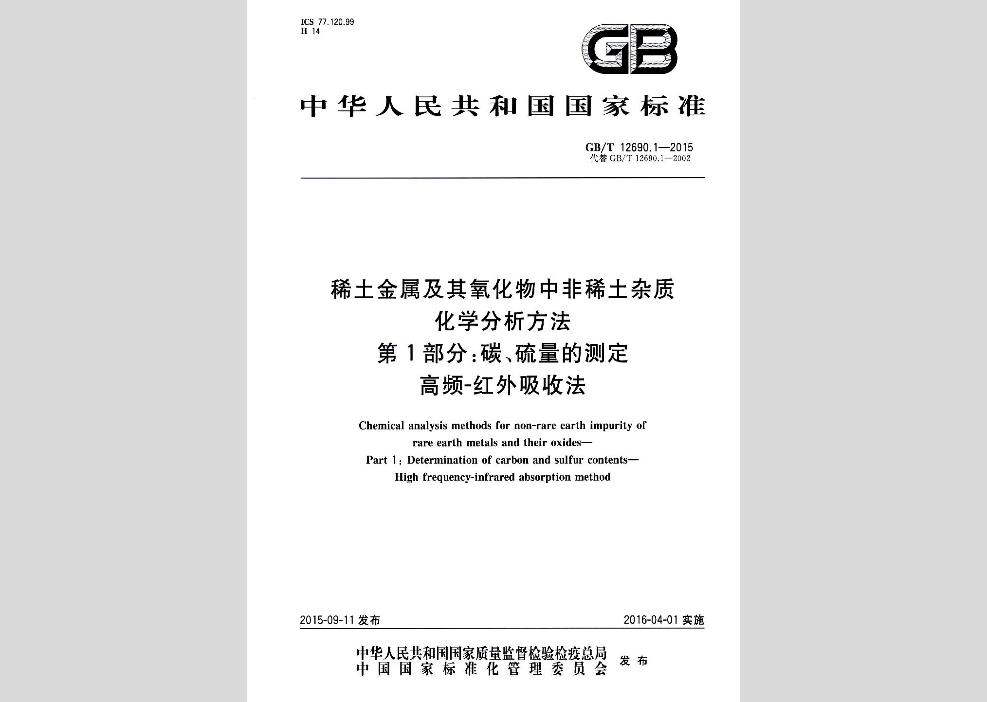 GB/T12690.1-2015:稀土金属及其氧化物中非稀土杂质化学分析方法第1部分:碳、硫量的测定高频-红外吸收法废止