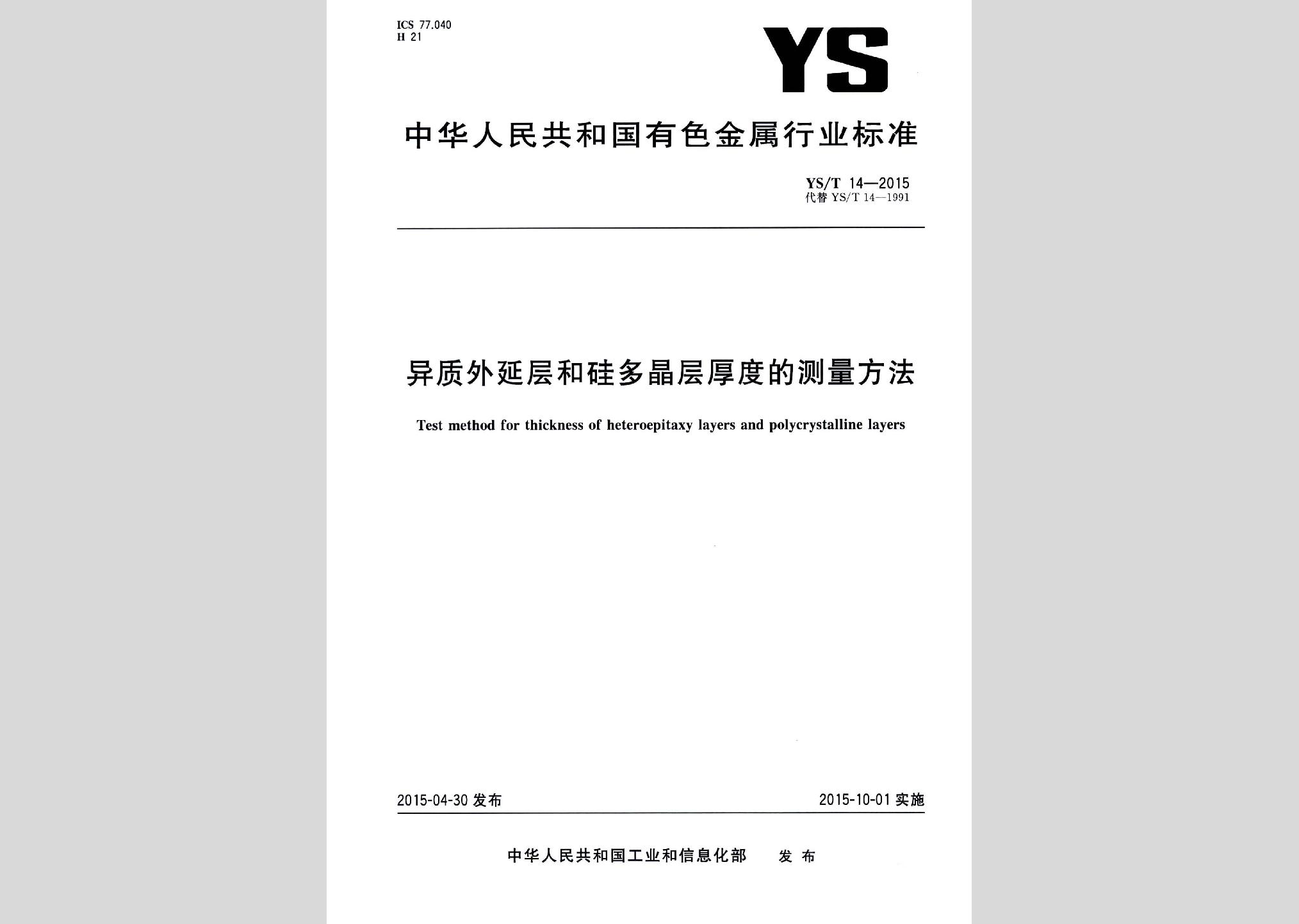 YS/T14-2015:异质外延层和硅多晶层厚度的测量方法现行