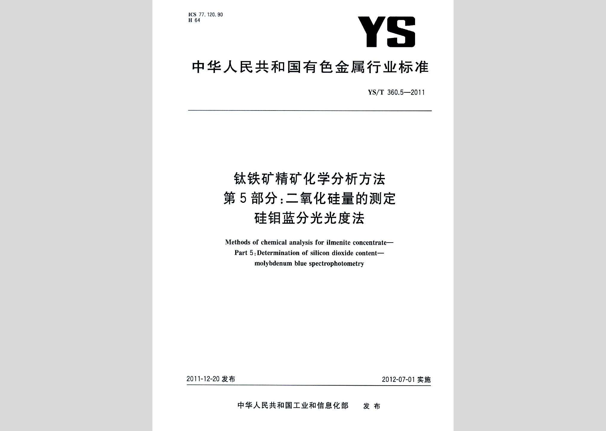 YS/T360.5-2011:钛铁矿精矿化学分析方法第5部分:二氧化硅量的测定硅钼蓝分光光度法现行