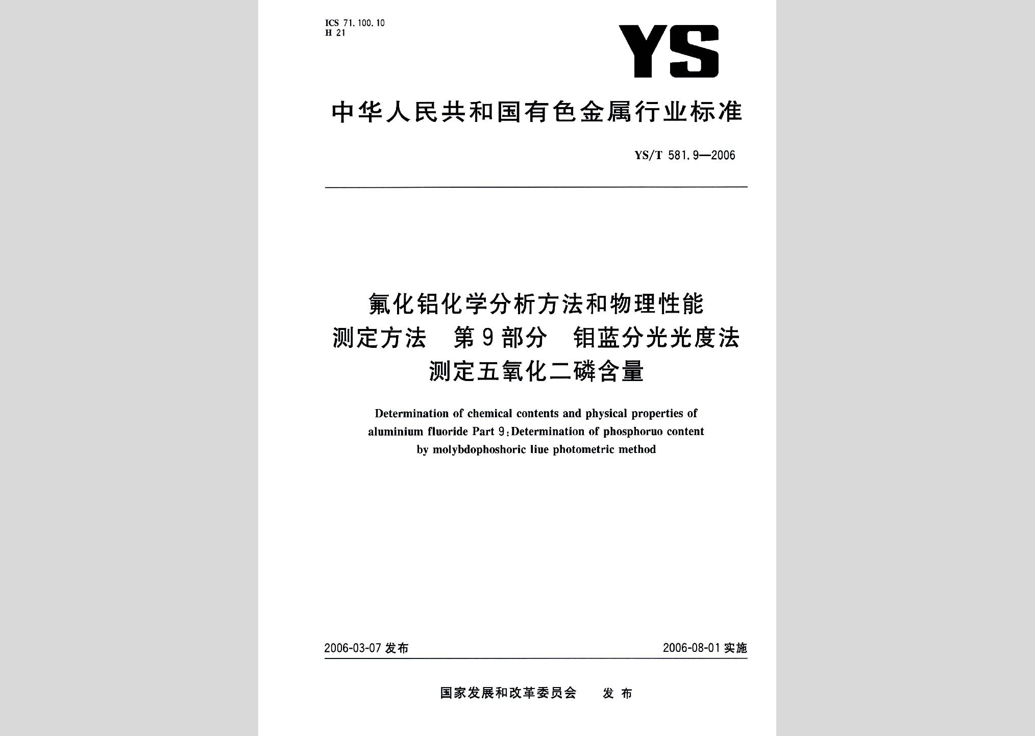YS/T581.9-2006:氟化铝化学分析方法和物理性能测定方法第9部分钼蓝分光光度法测定五氧化二磷含量现行