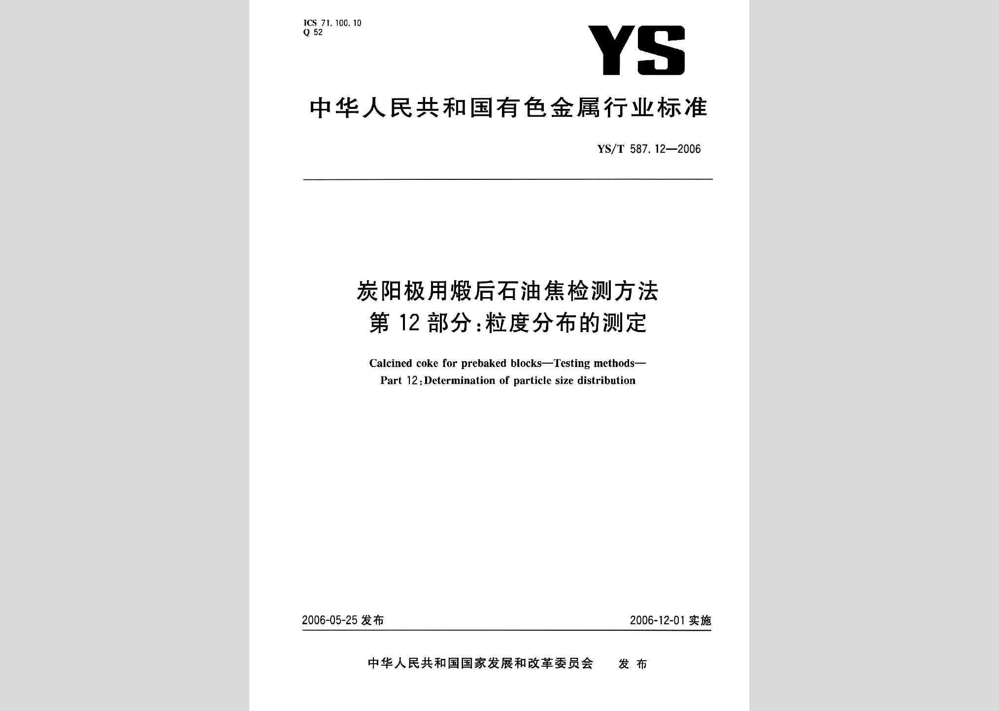 YS/T587.12-2006:炭阳极用煅后石油焦检测方法第12部分:粒度分布的测定现行
