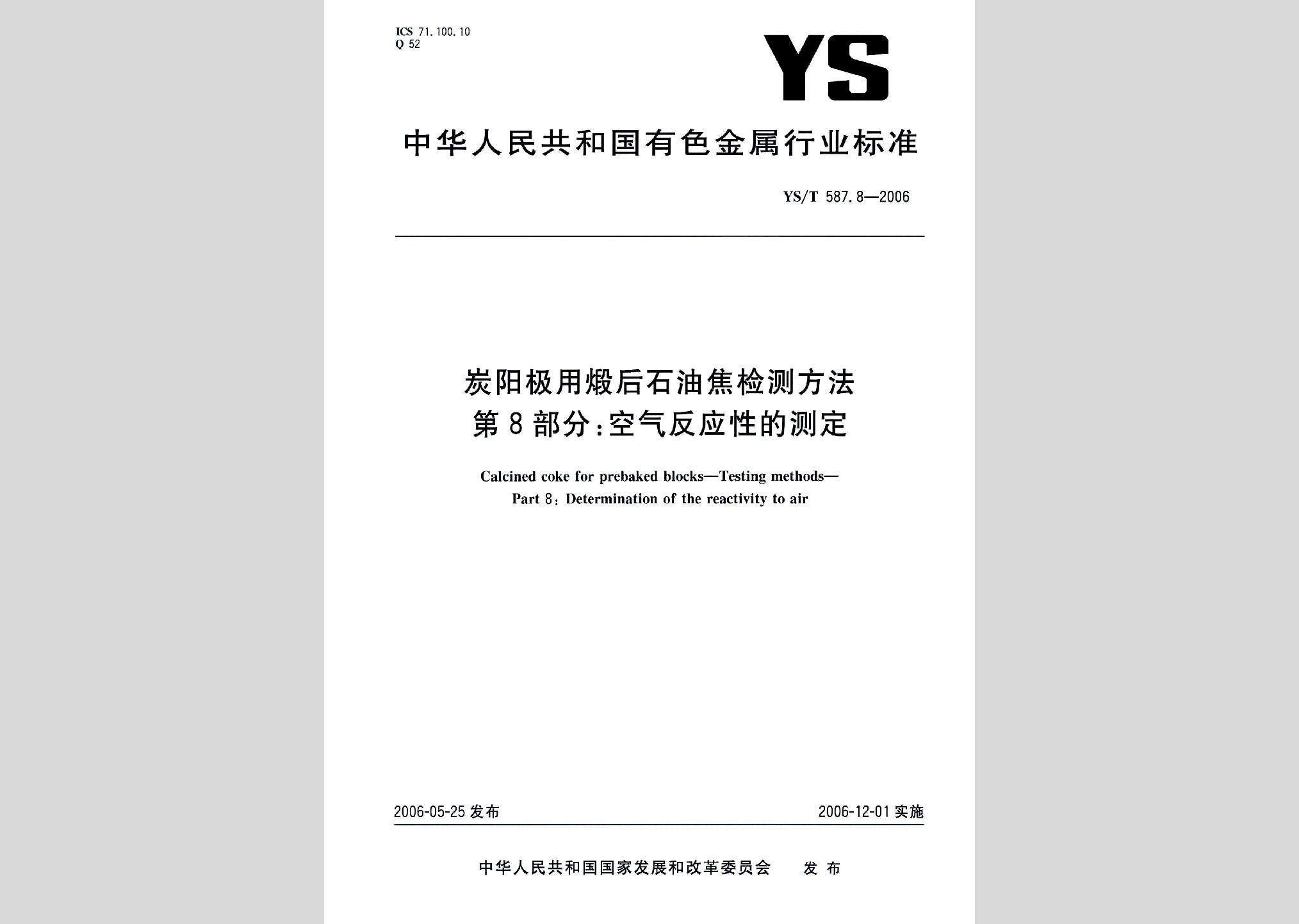 YS/T587.8-2006:炭阳极用煅后石油焦检测方法第8部分:空气反应性的测定现行