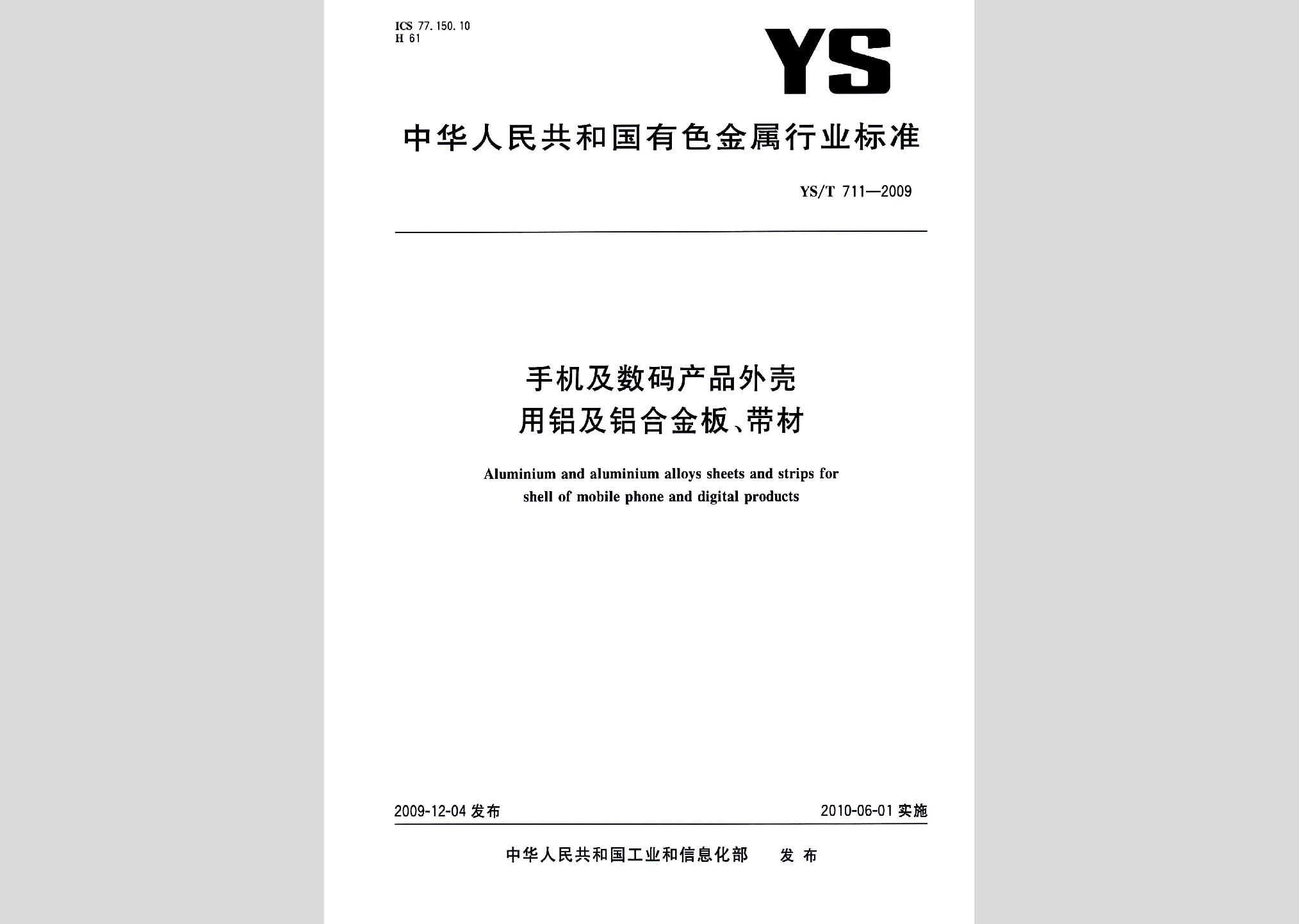 YS/T711-2009:手机及数码产品外壳用铝及铝合金板、带材废止