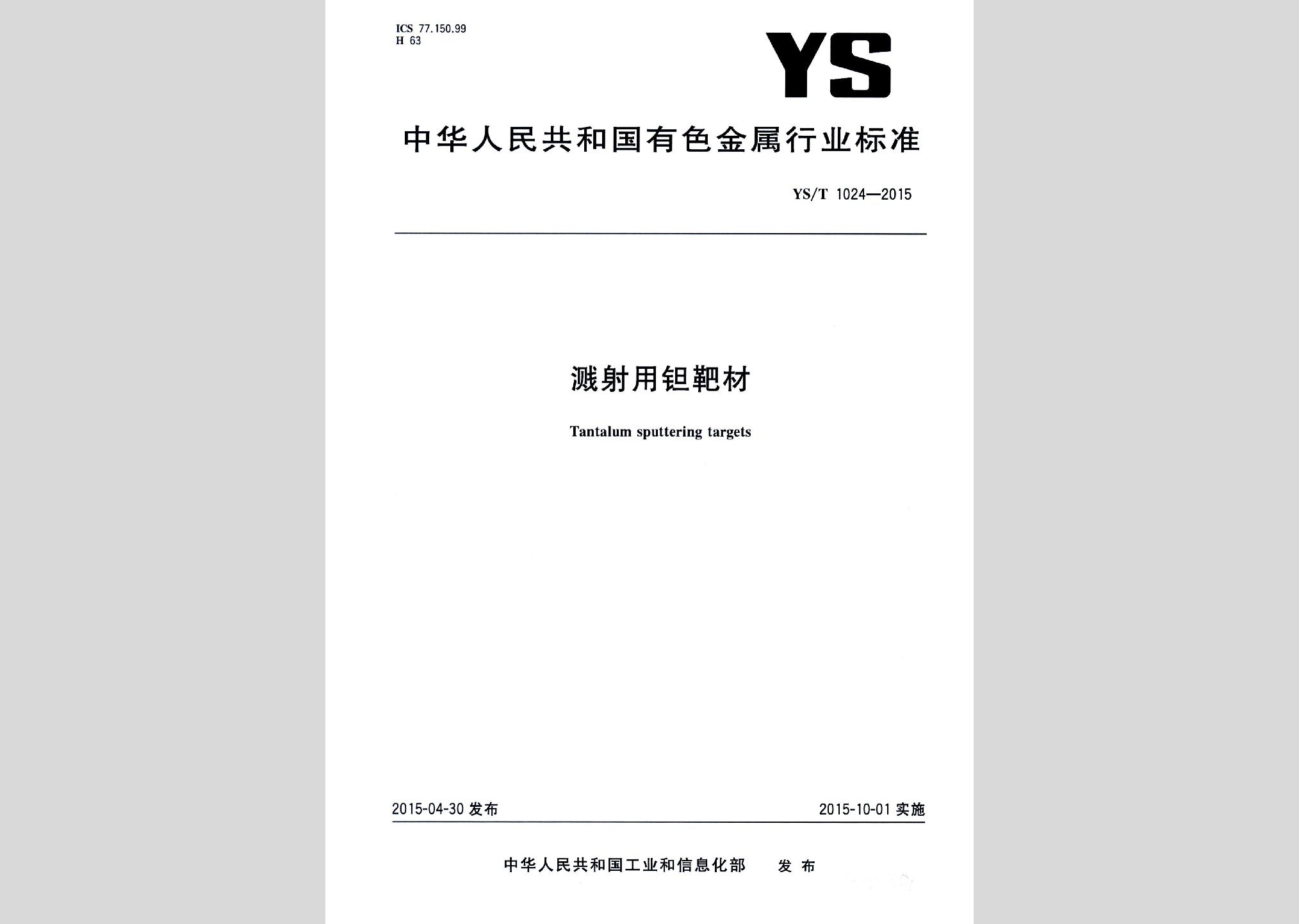 YS/T1024-2015:溅射用钽靶材现行
