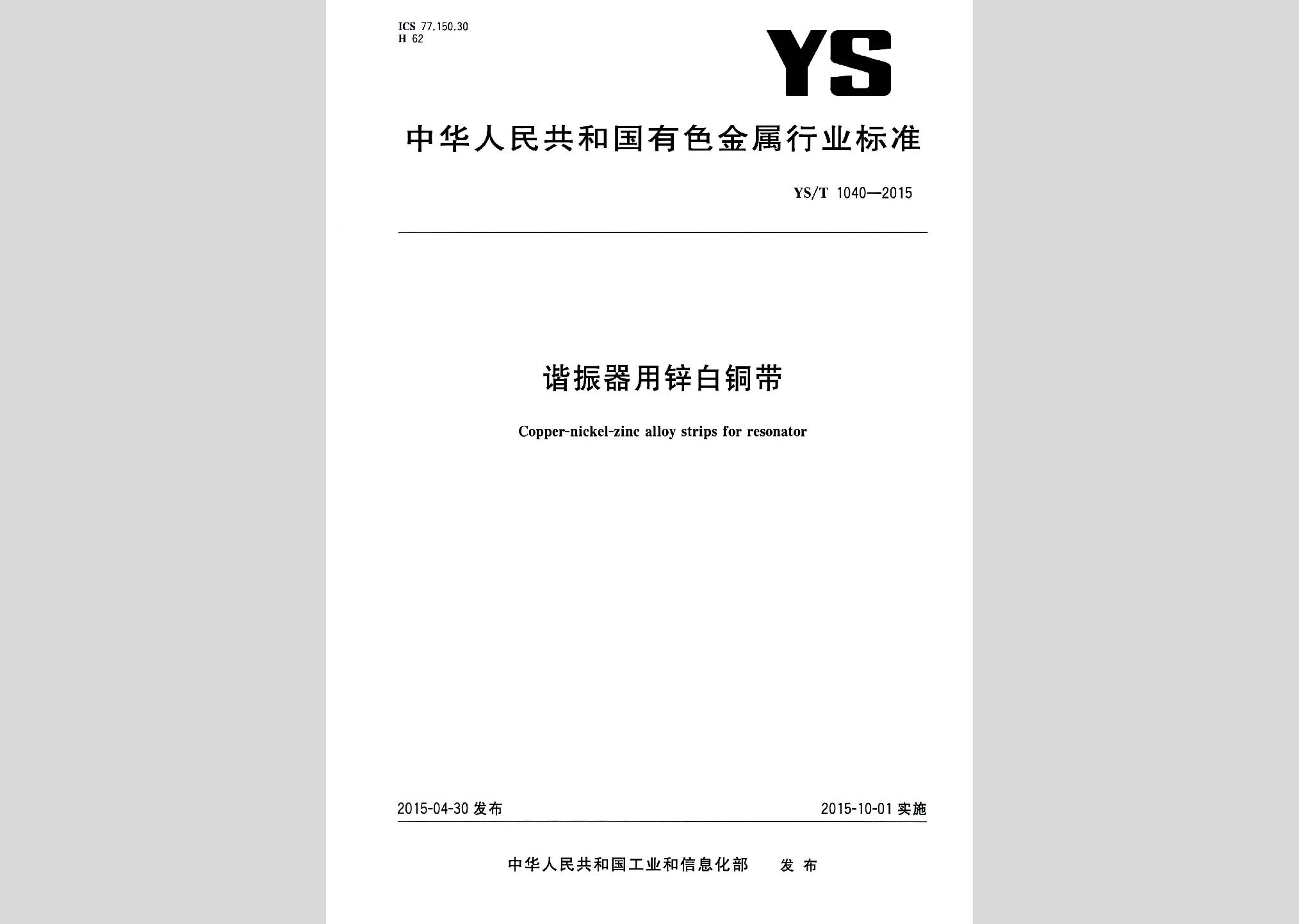 YS/T1040-2015:谐振器用锌白铜带现行