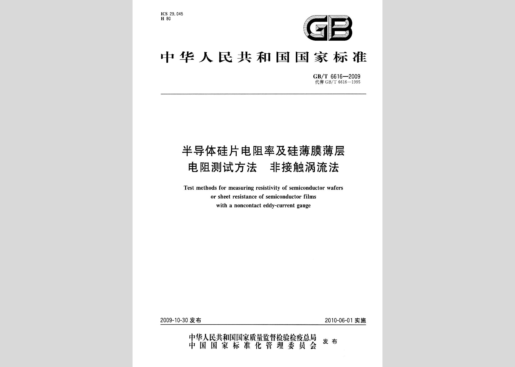 GB/T6616-2009:半导体硅片电阻率及硅薄膜薄层电阻测试方法非接触涡流法现行