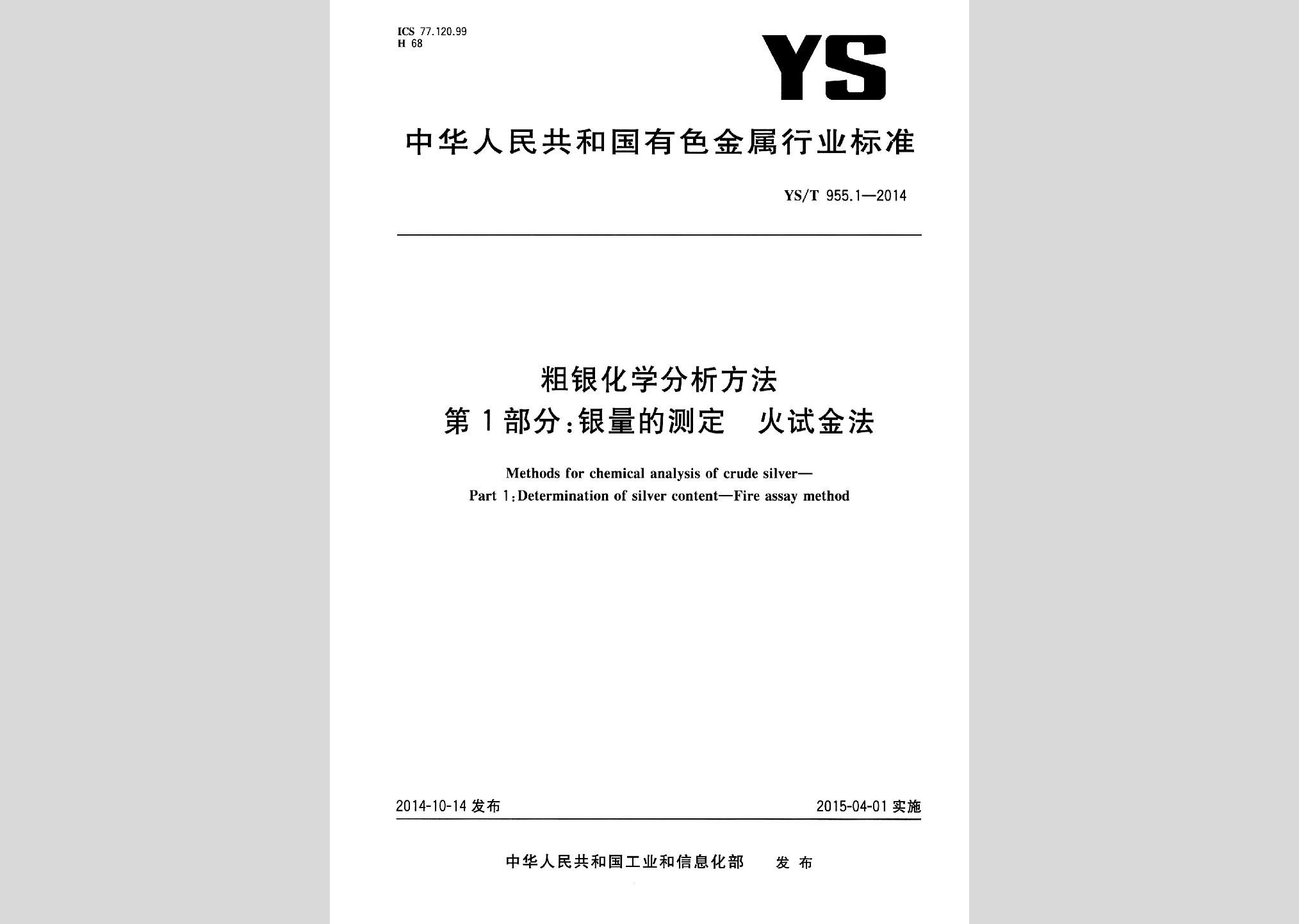 YS/T955.1-2014:粗银化学分析方法第1部分:银量的测定火试金法现行