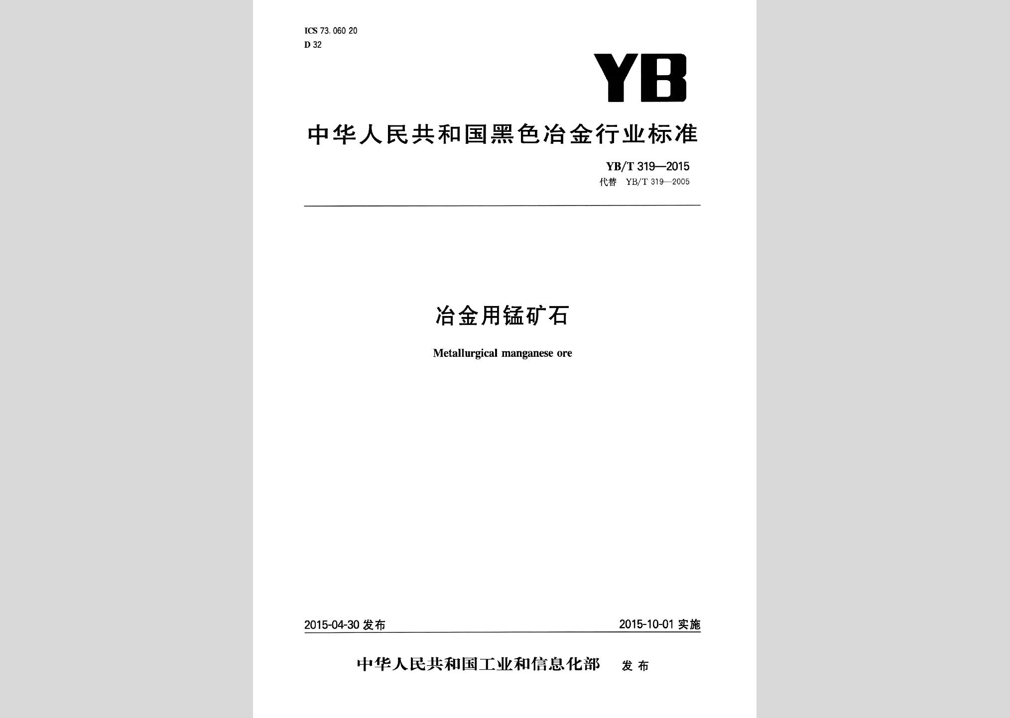 YB/T319-2015:冶金用锰矿石现行