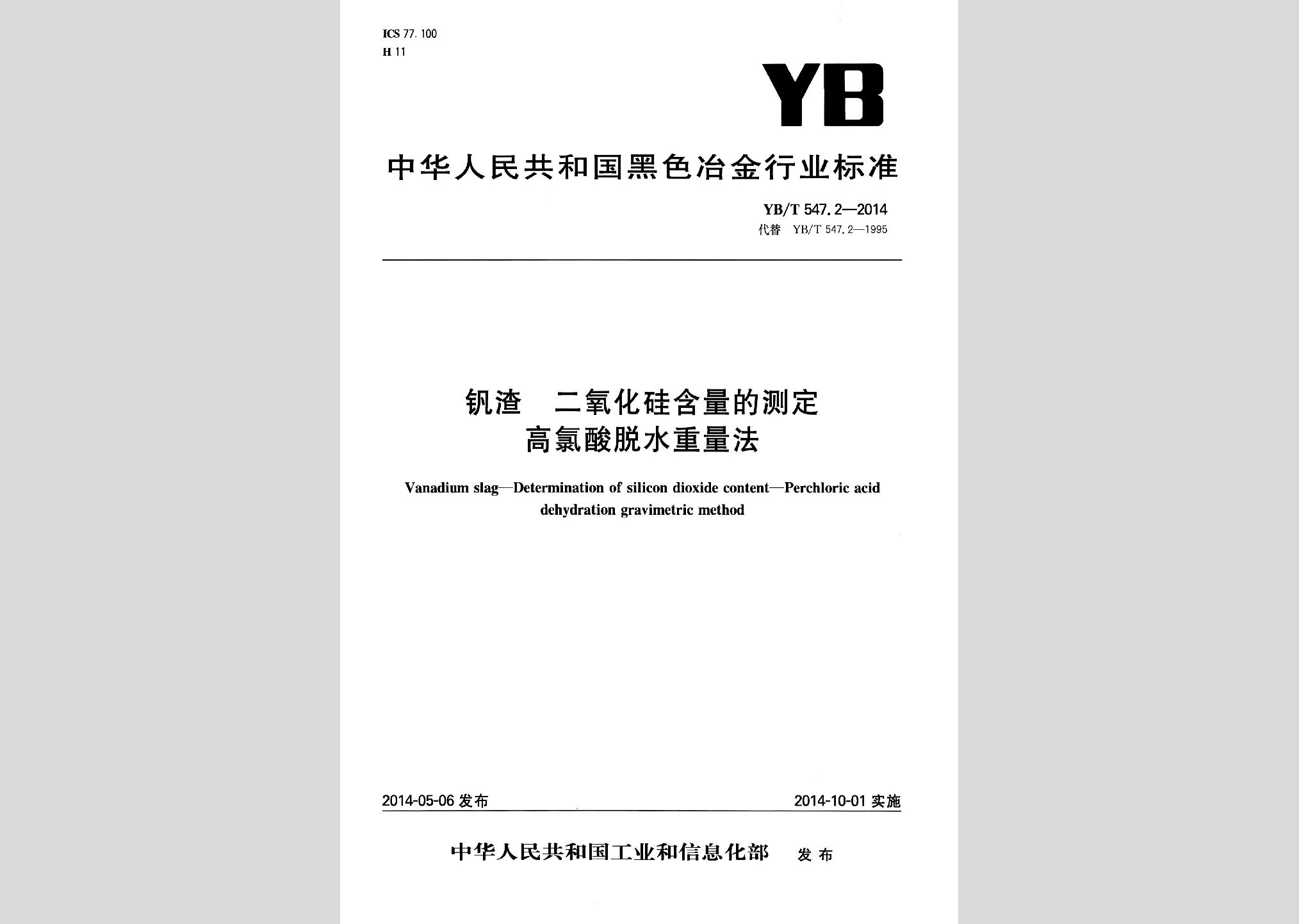 YB/T547.2-2014:钒渣二氧化硅含量的测定高铝酸脱水重量法现行