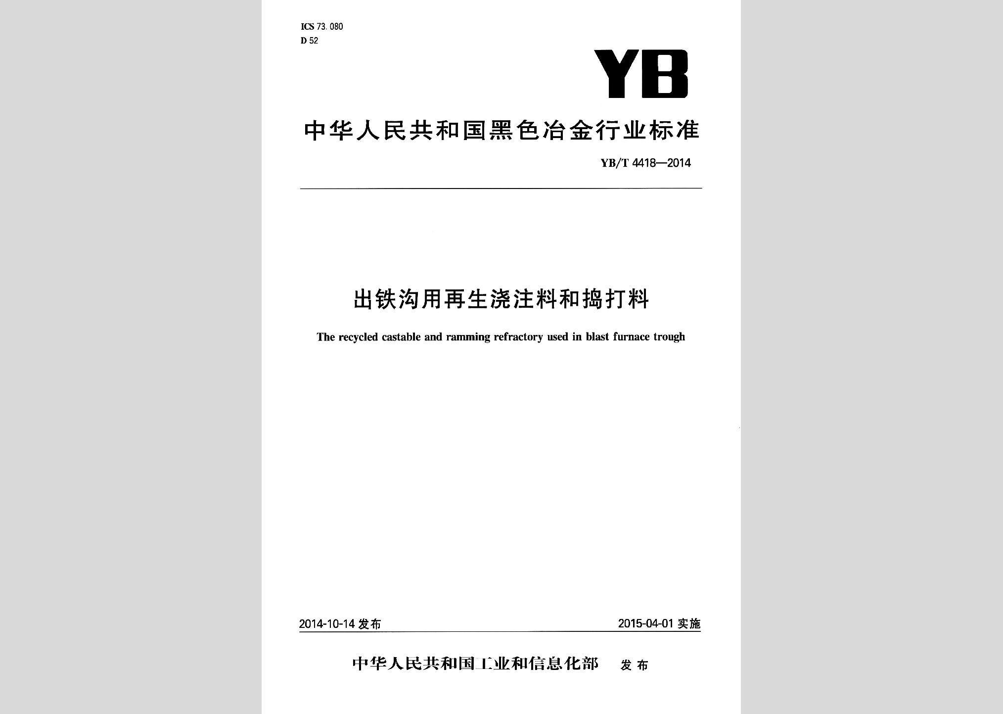 YB/T4418-2014:出铁沟用再生浇注料和捣打料现行