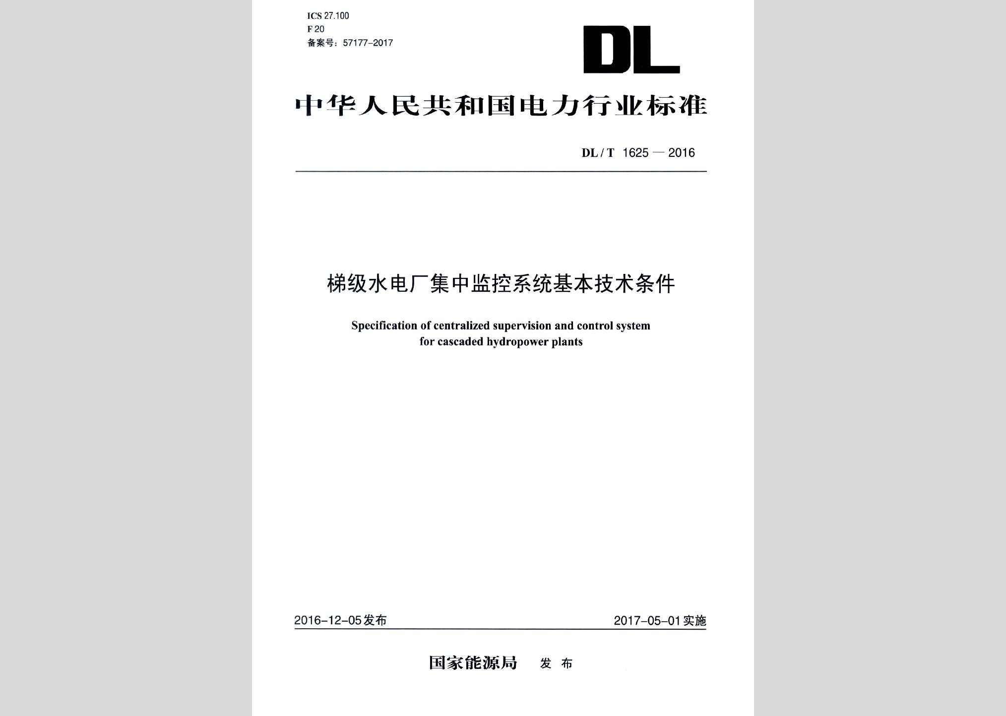 DL/T1625-2016:梯级水电厂集中监控系统基本技术条件现行