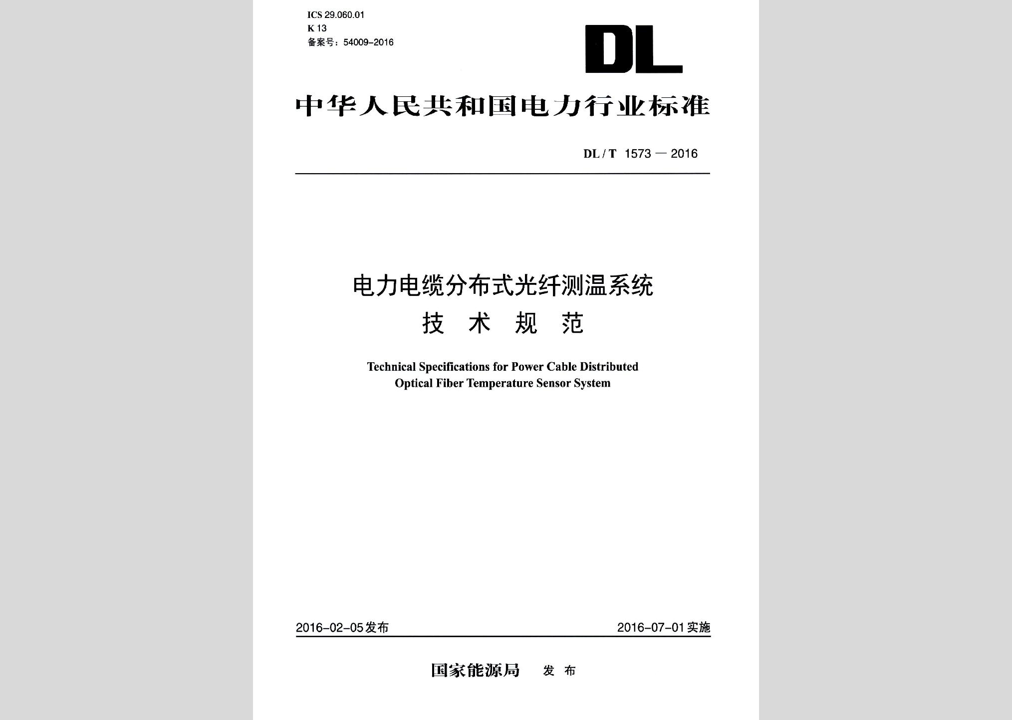 DL/T1573-2016:电力电缆分布式光纤测温系统技术规范现行