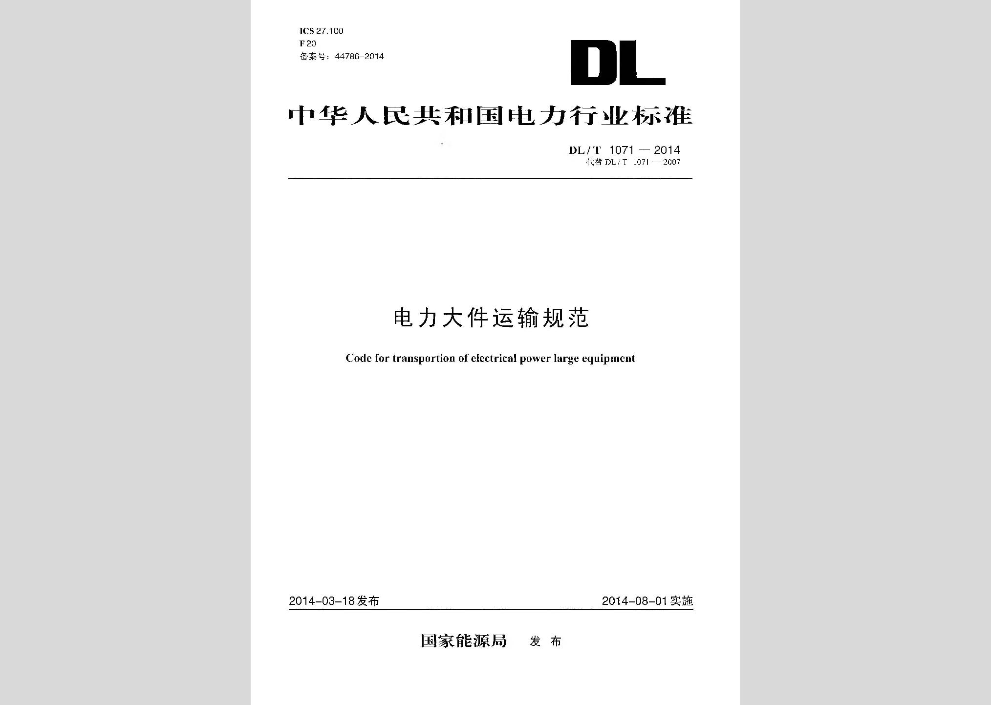 DL/T1071-2014:电力大件运输规范现行