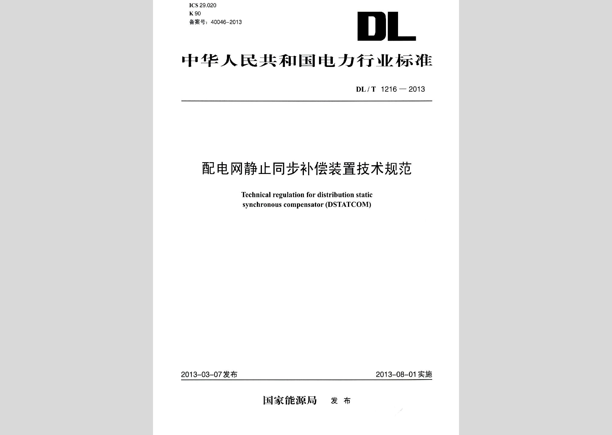 DL/T1216-2013:配电网静止同步补偿装置技术规范废止