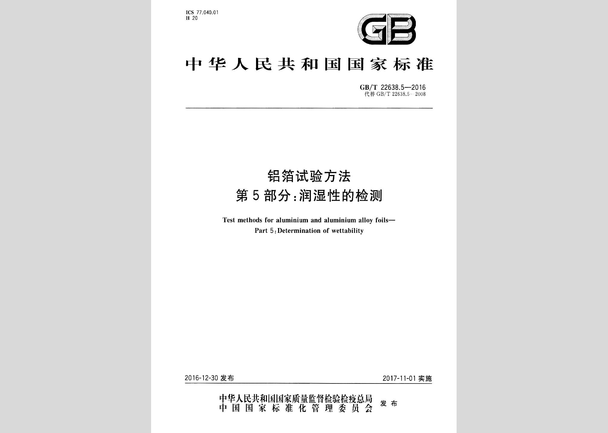 GB/T22638.5-2016:铝箔试验方法第5部分:润湿性的检测现行