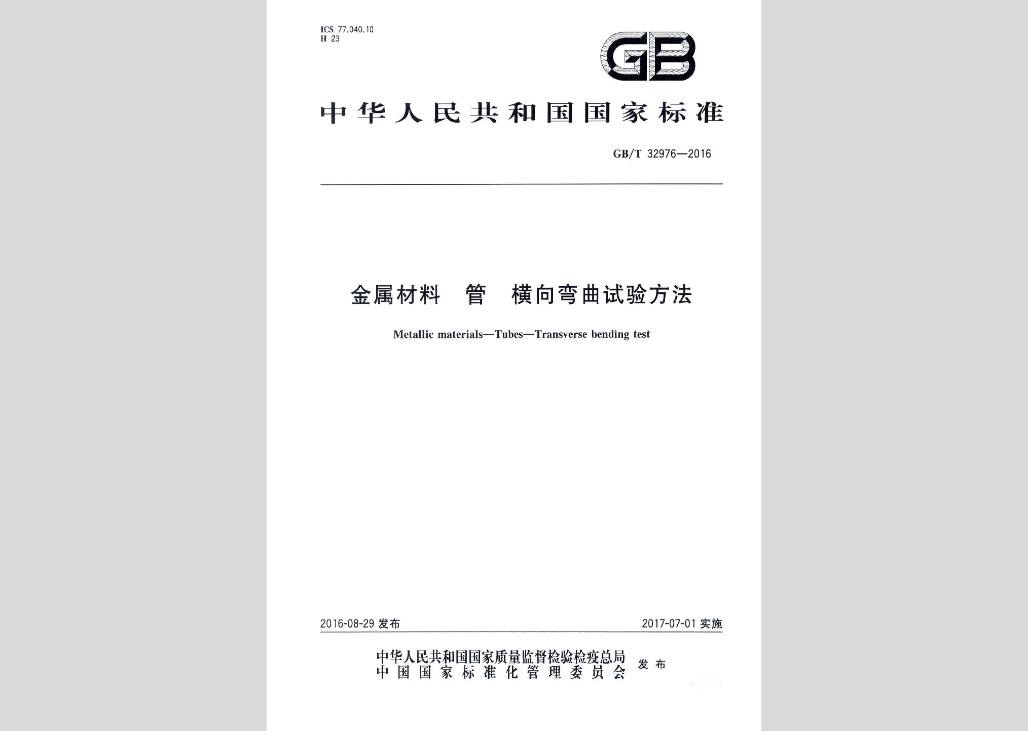 GB/T32976-2016:金属材料管横向弯曲试验方法现行