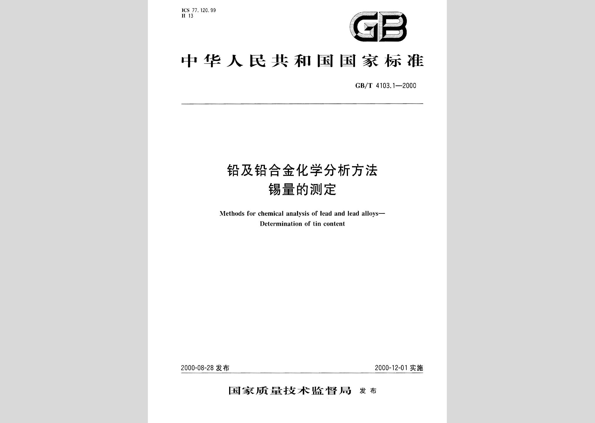 GB/T4103.1-2000:铅及铅合金化学分析方法锡量的测定废止