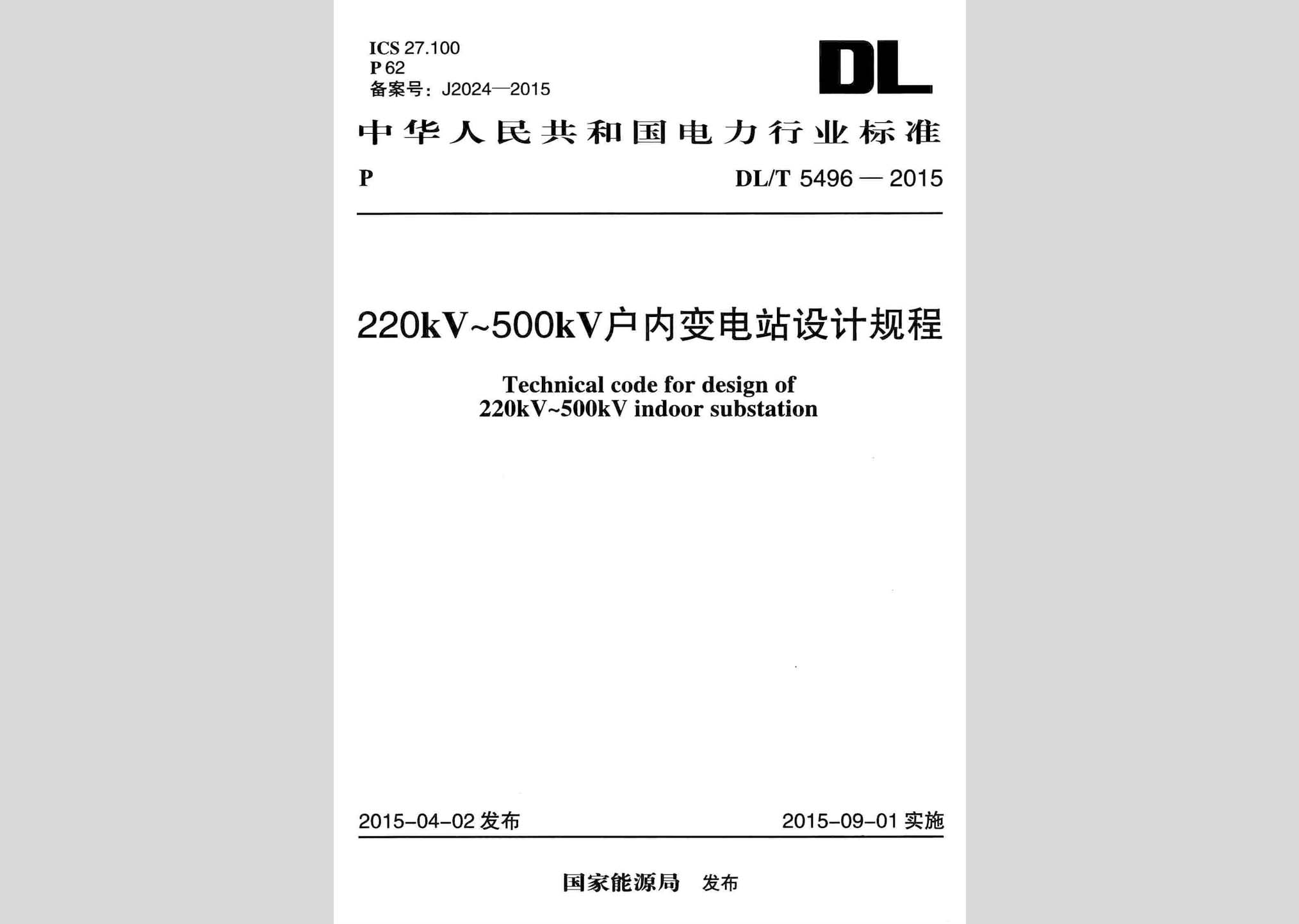 DL/T5496-2015:220kV~500kV户内变电站设计规程现行