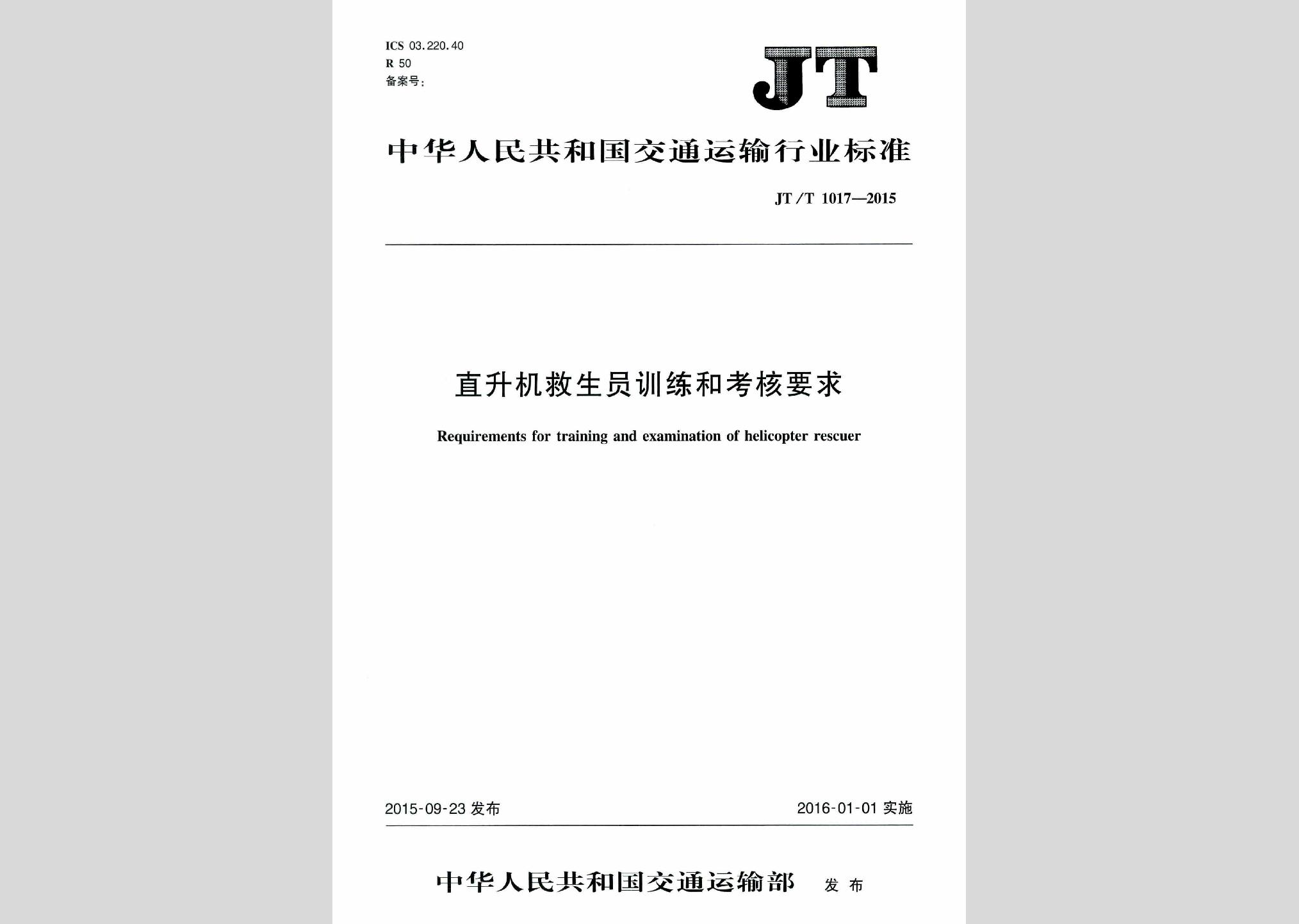 JT/T1017-2015:直升机救生员训练和考核要求现行