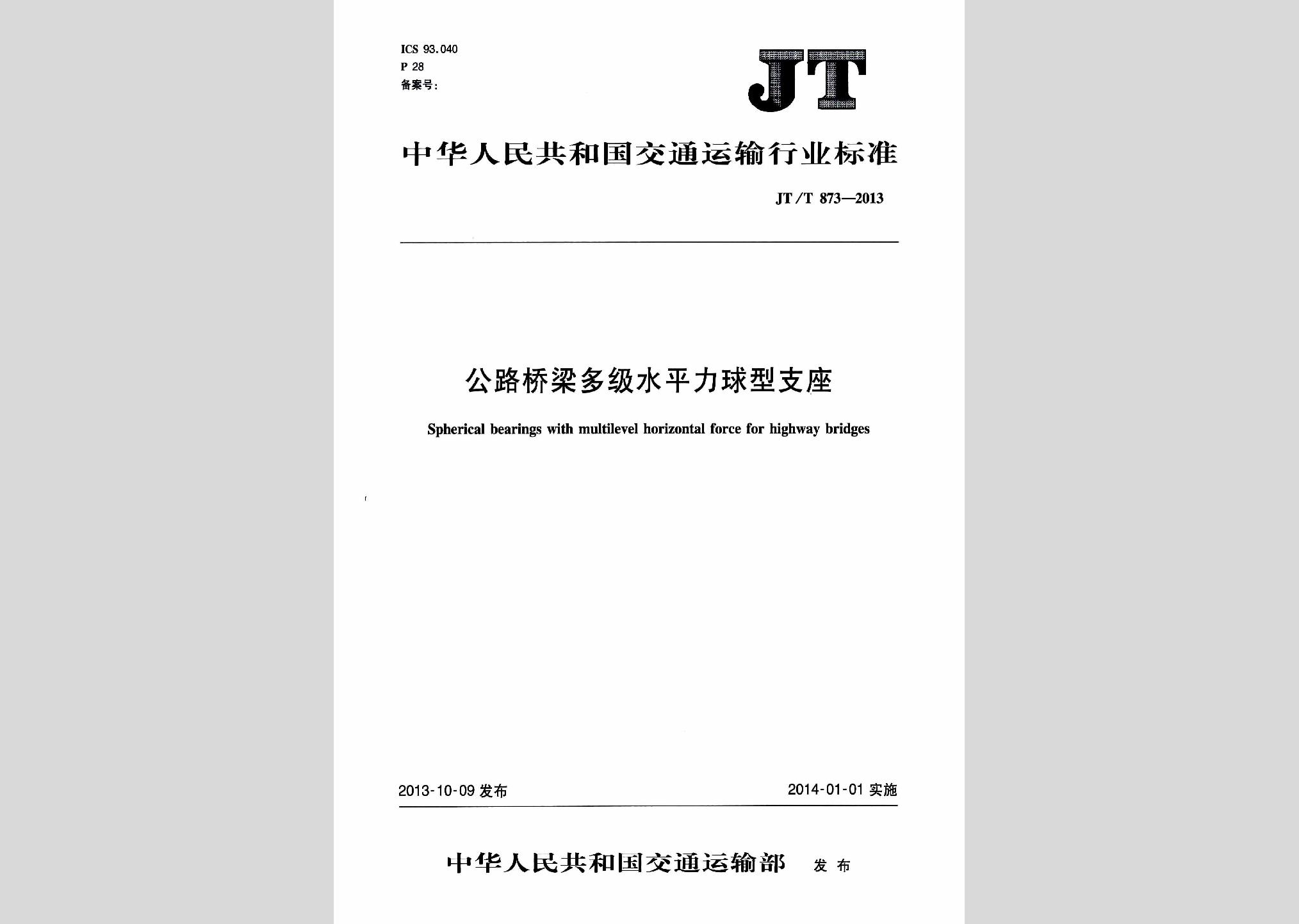 JT/T873-2013:公路桥梁多级水平力球型支座现行