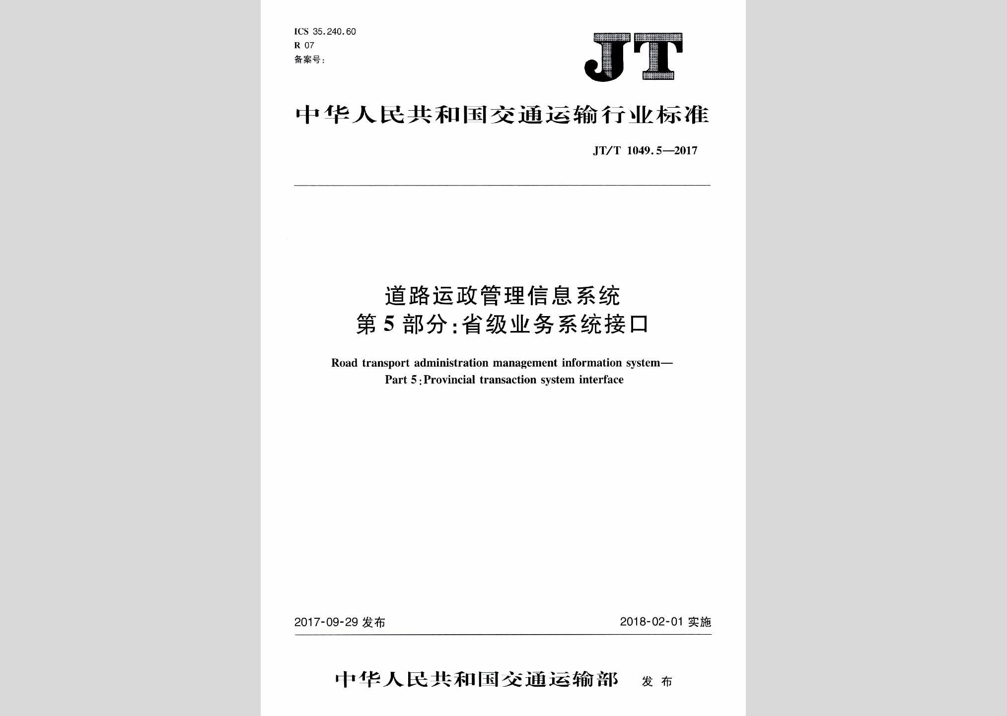 JT/T1049.5-2017:道路运政管理信息系统第5部分:省级业务系统接口现行