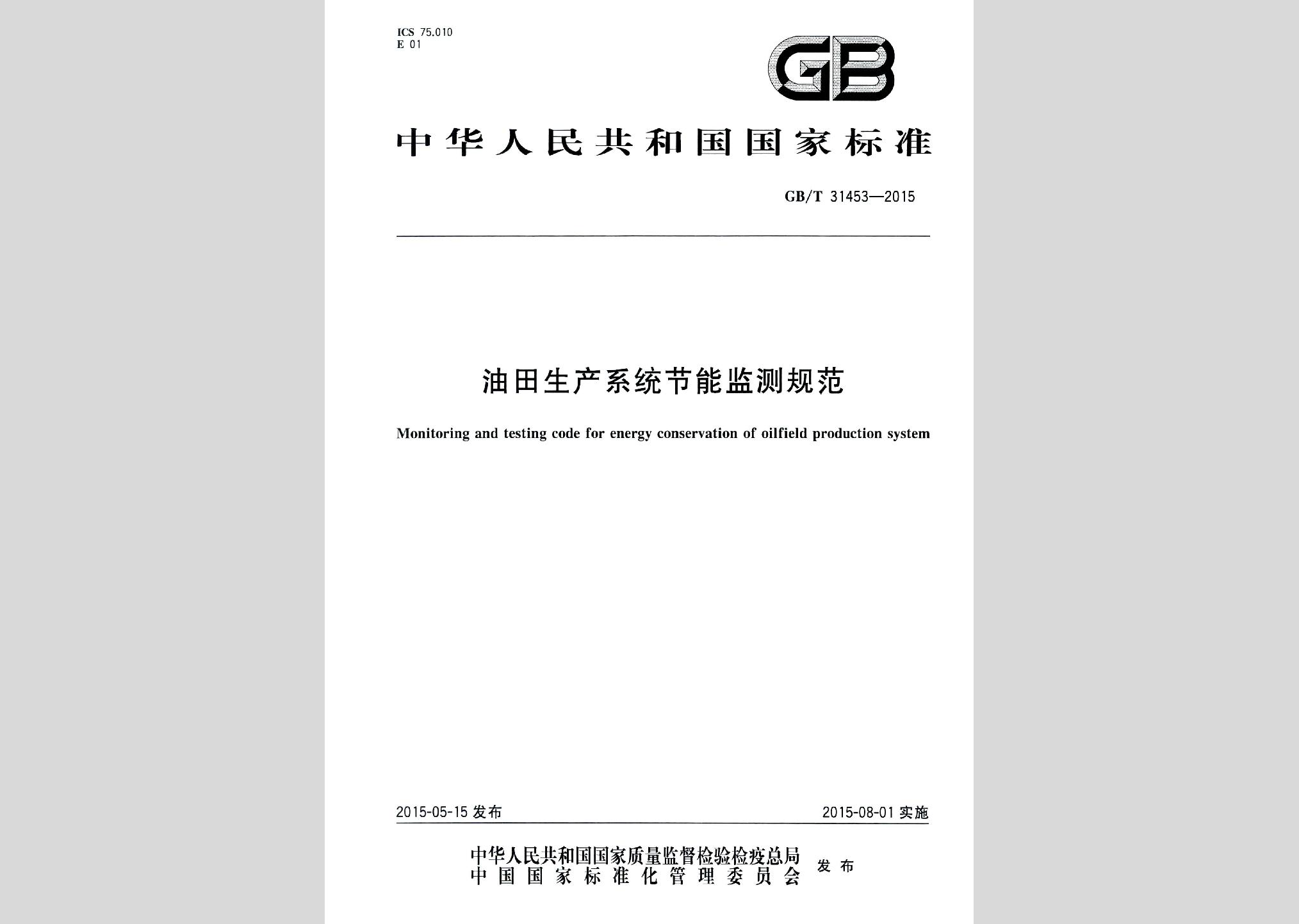 GB/T31453-2015:油田生产系统节能监测规范现行