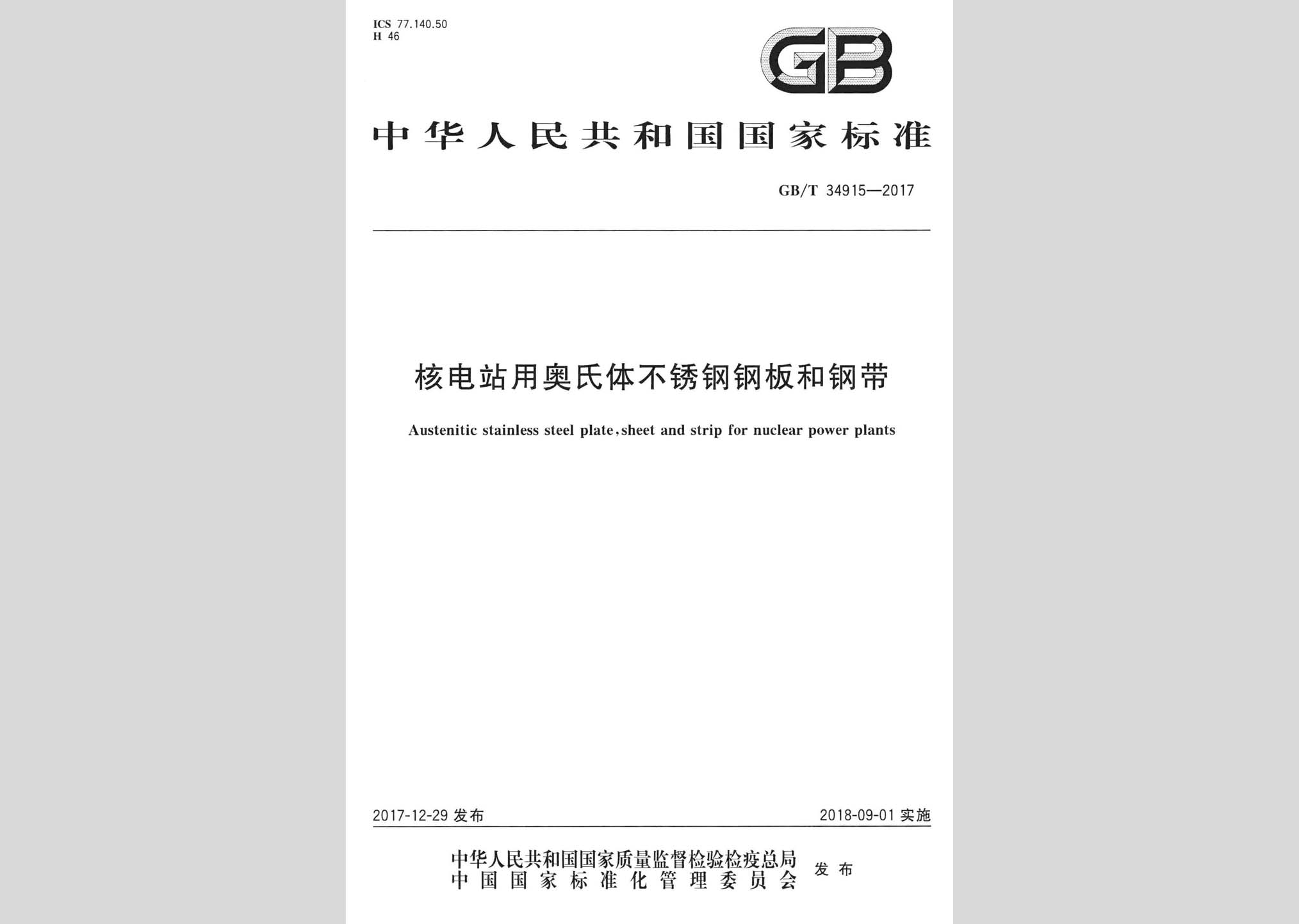GB/T34915-2017:核电站用奥氏体不锈钢钢板和钢带现行