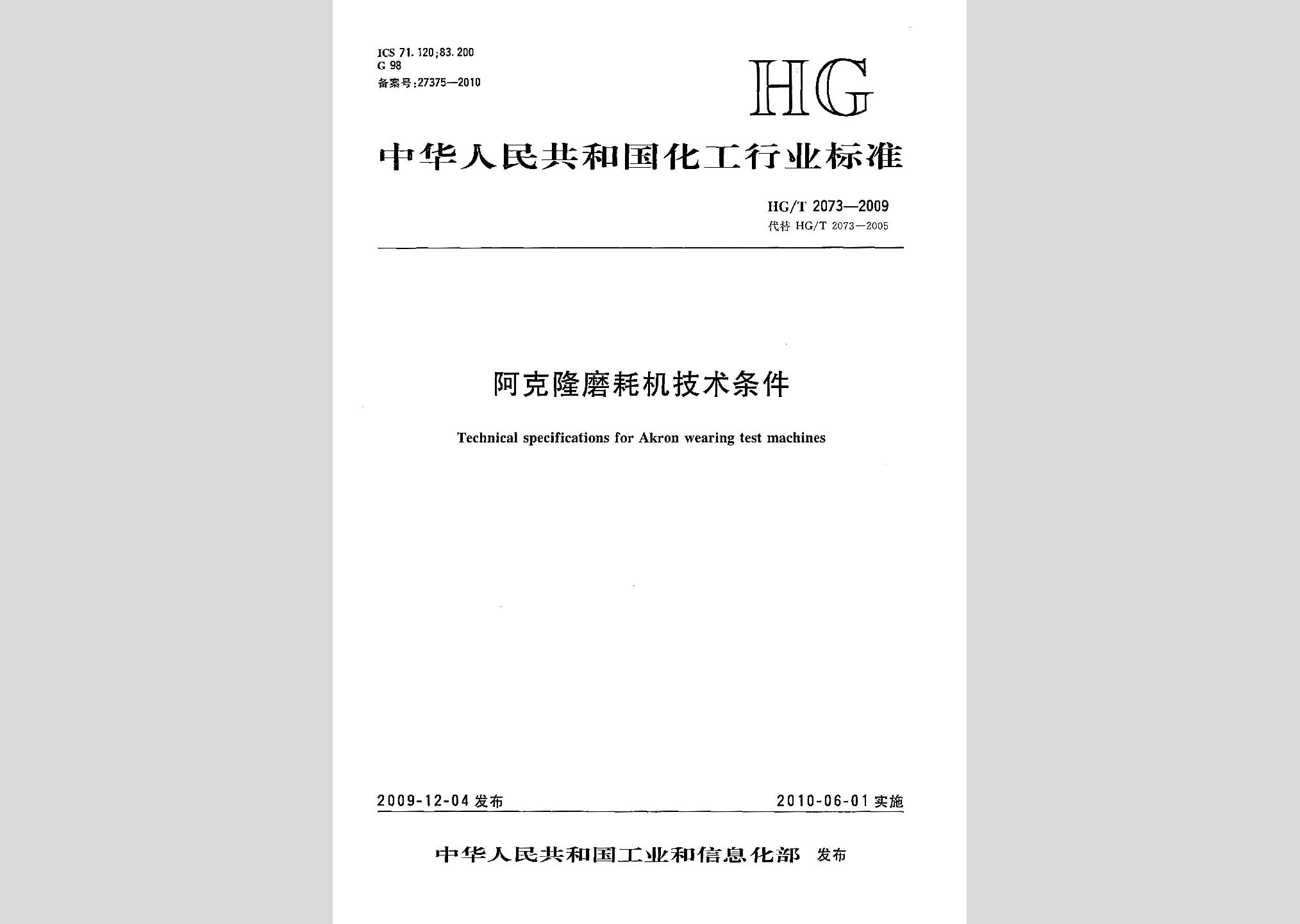 HG/T2073-2009:阿克隆磨耗机技术条件废止