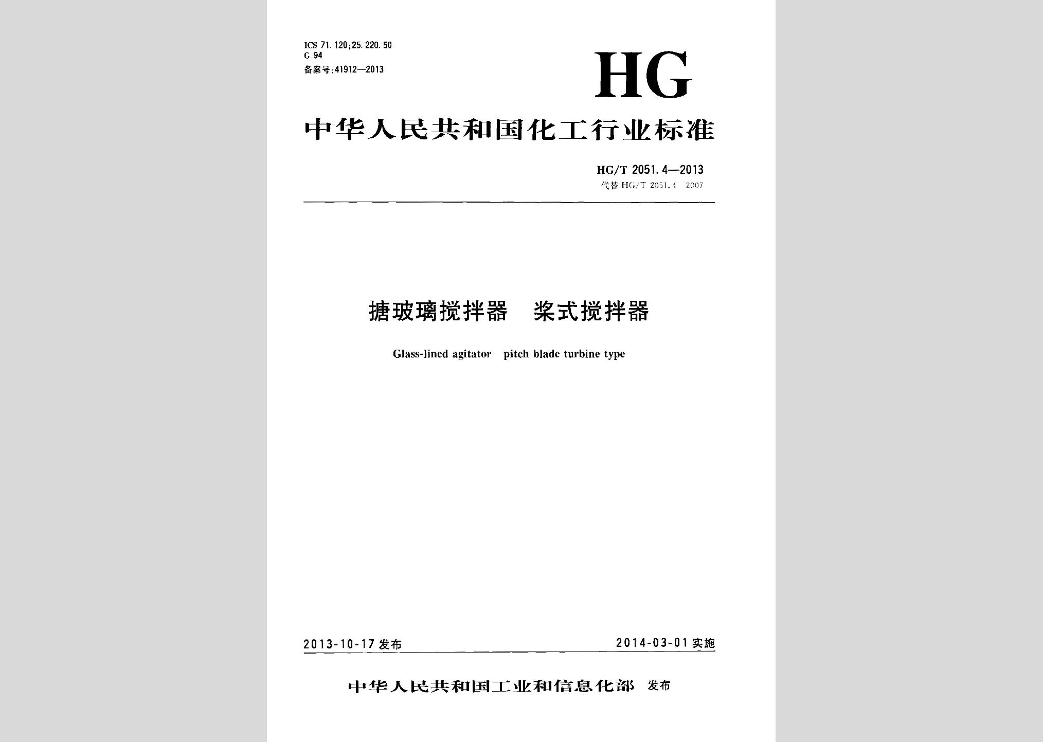 HG/T2051.4-2013:搪玻璃搅拌器桨式搅拌器废止