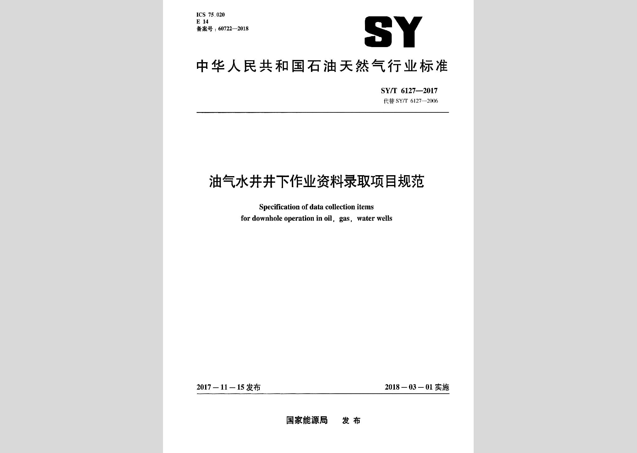 SY/T6127-2017:油气水井井下作业资料录取项目规范现行