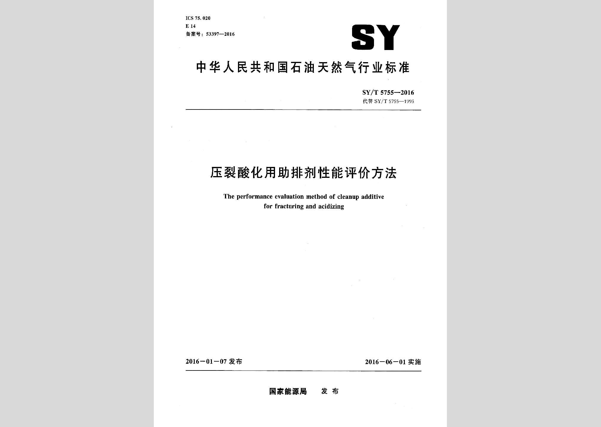 SY/T5755-2016:压裂酸化用助排剂性能评价方法现行
