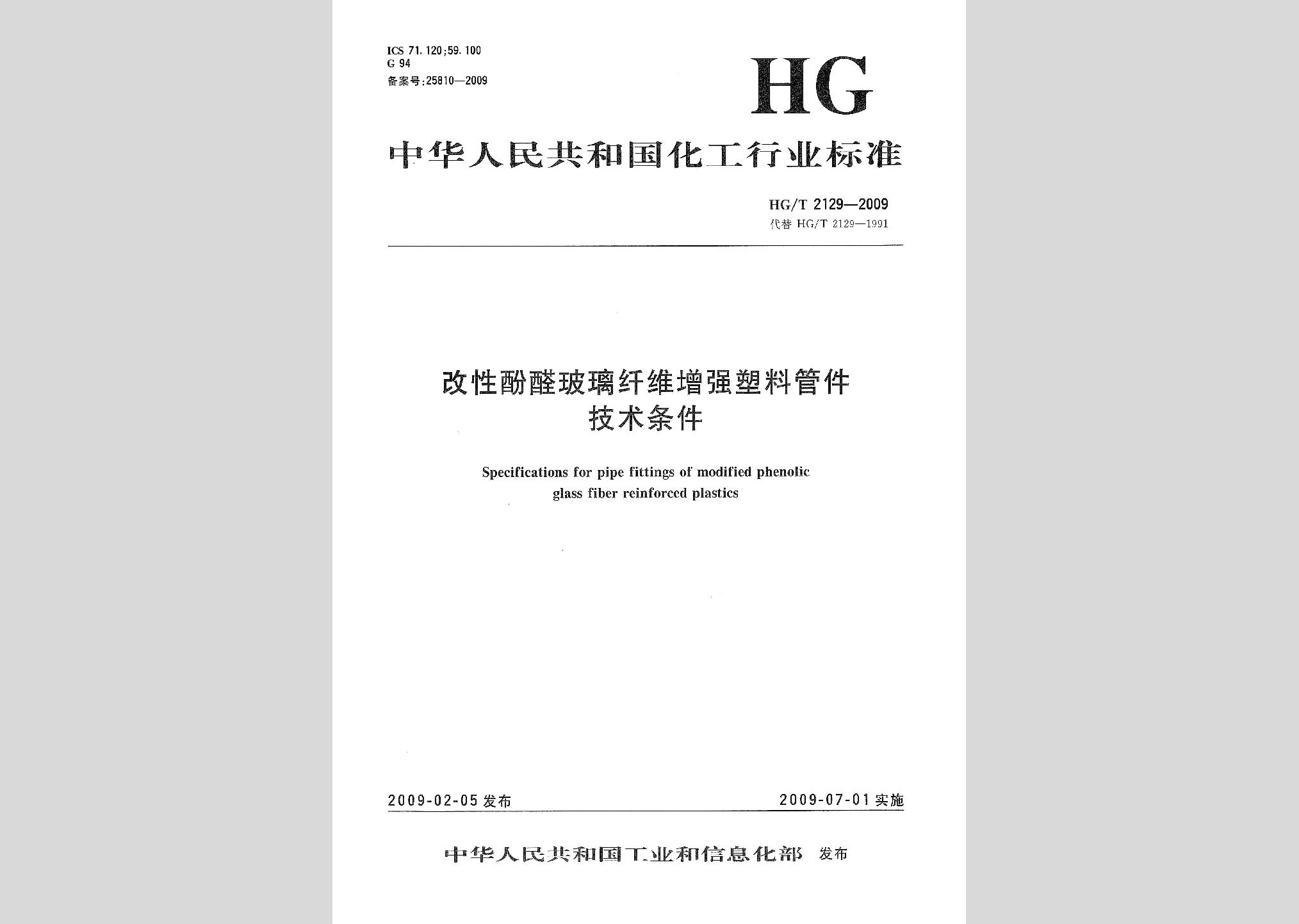 HG/T2129-2009:改性酚醛玻璃纤维增强塑料管件技术条件现行