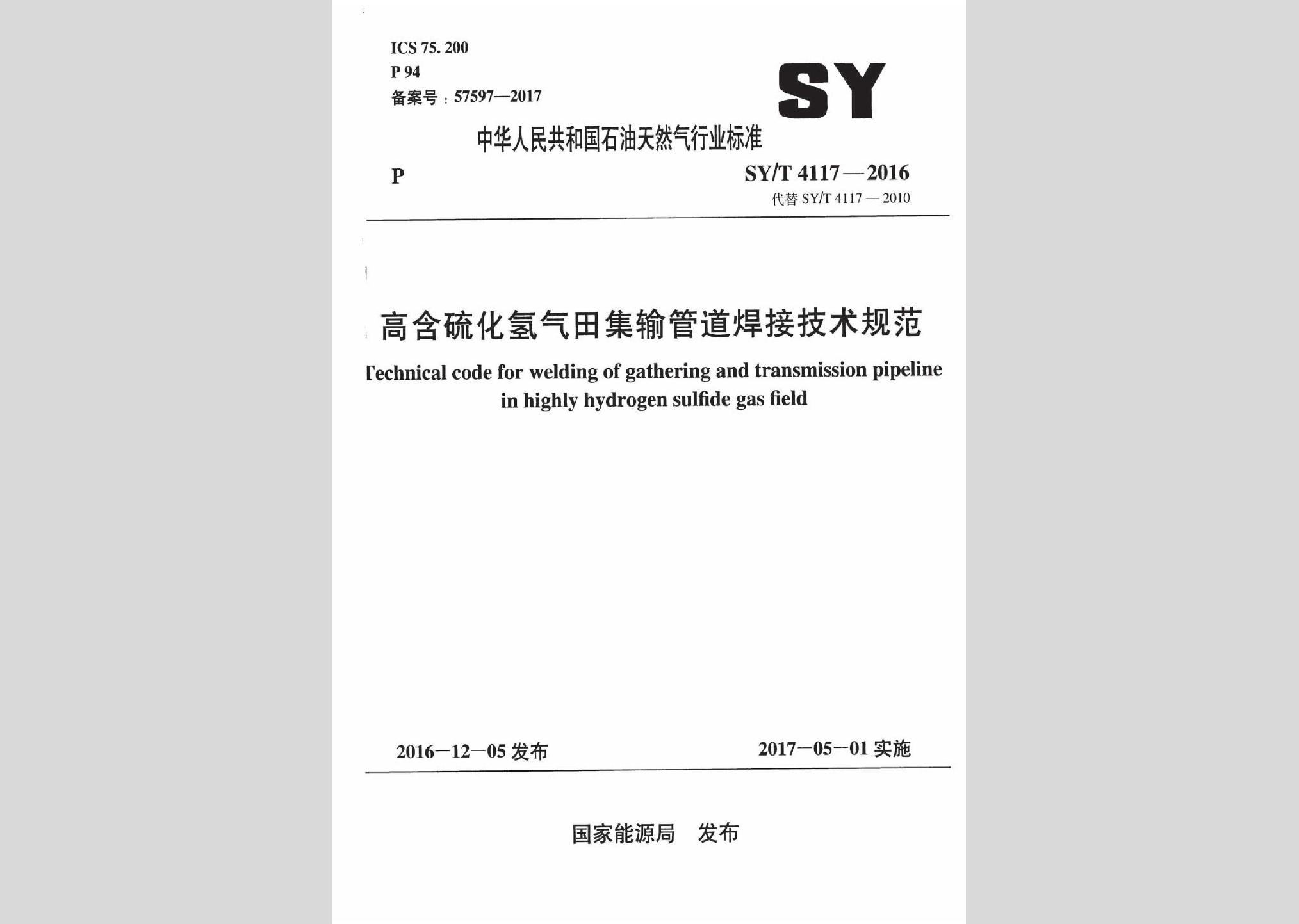 SY/T4117-2016:高含硫化氢气田集输管道焊接技术规范现行