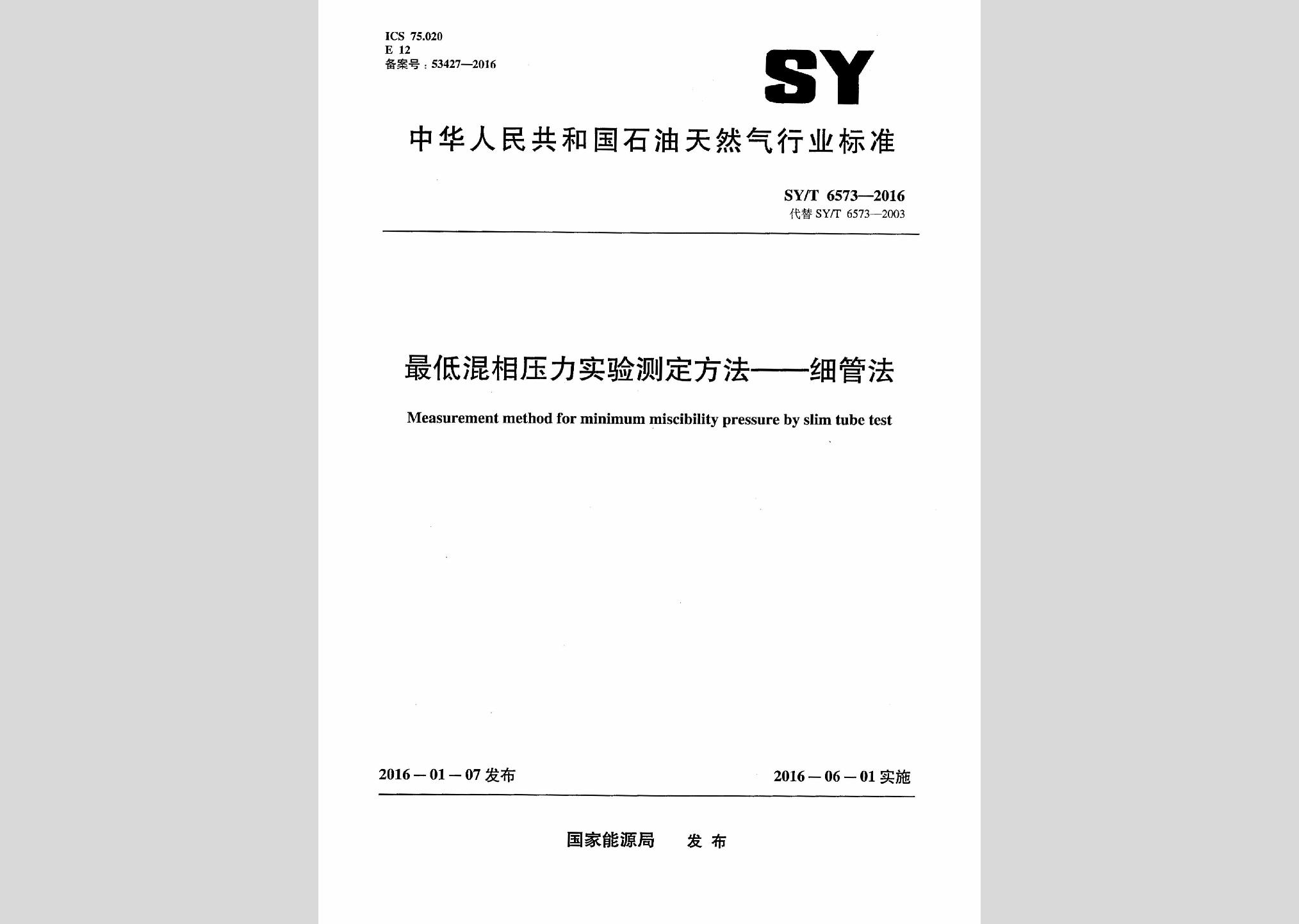 SY/T6573-2016:最低混相压力实验测定方法-细管法现行