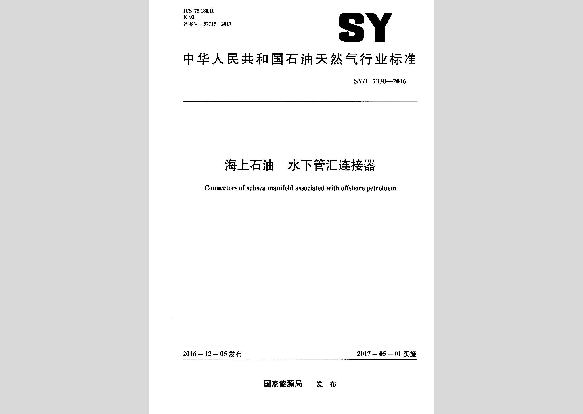 SY/T7330-2016:海上石油水下管汇连接器现行