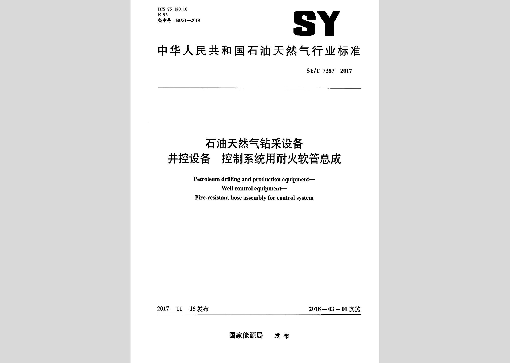 SY/T7387-2017:石油天然气钻采设备井控设备控制系统用耐火软管总成现行