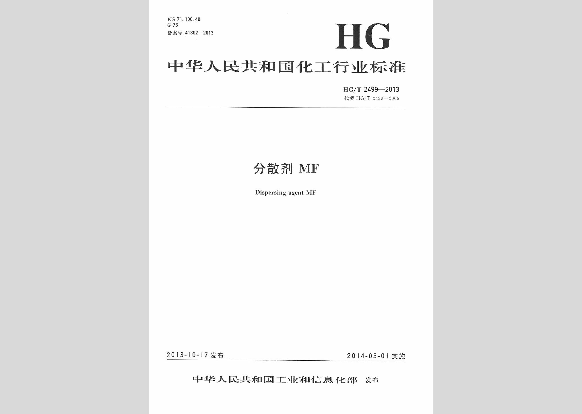 HG/T2499-2013:分散剂MF现行