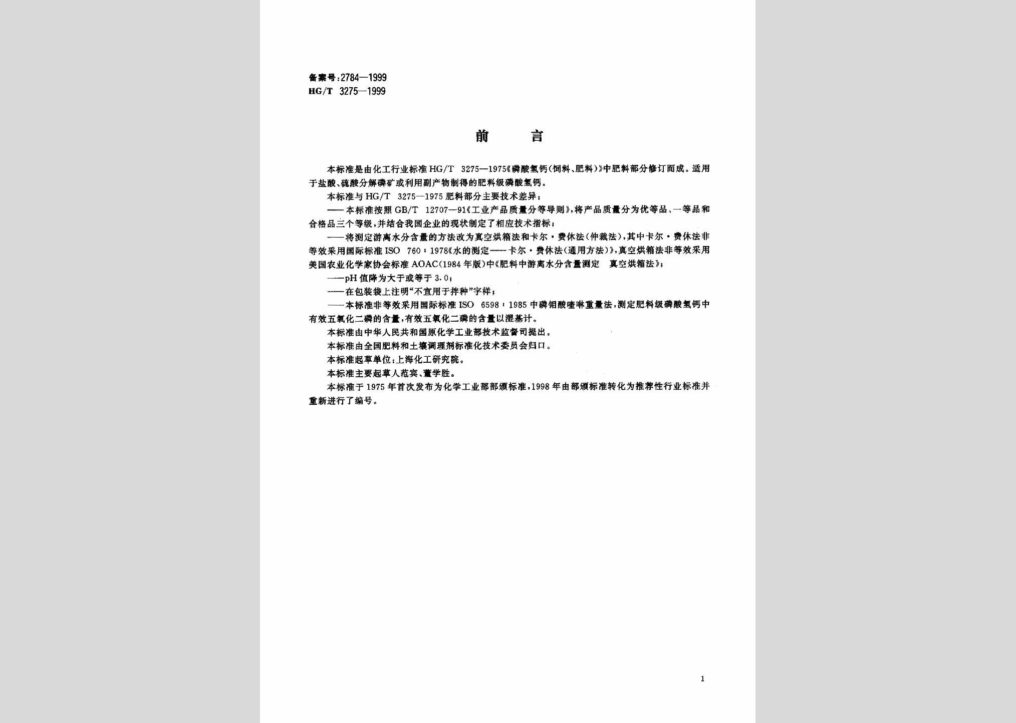HG/T3275-1999:肥料级磷酸氢钙现行