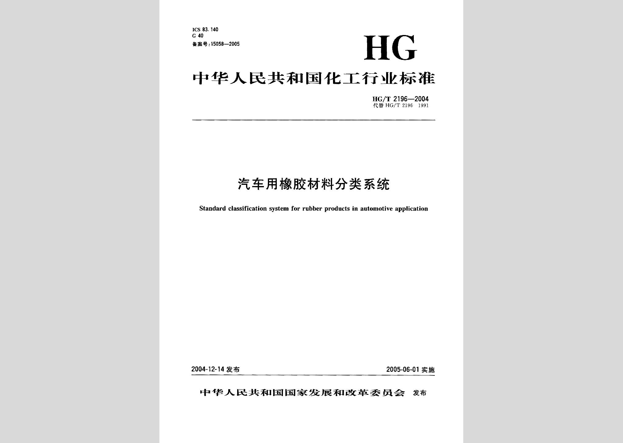 HG/T2196-2004:汽车用橡胶材料分类系统现行