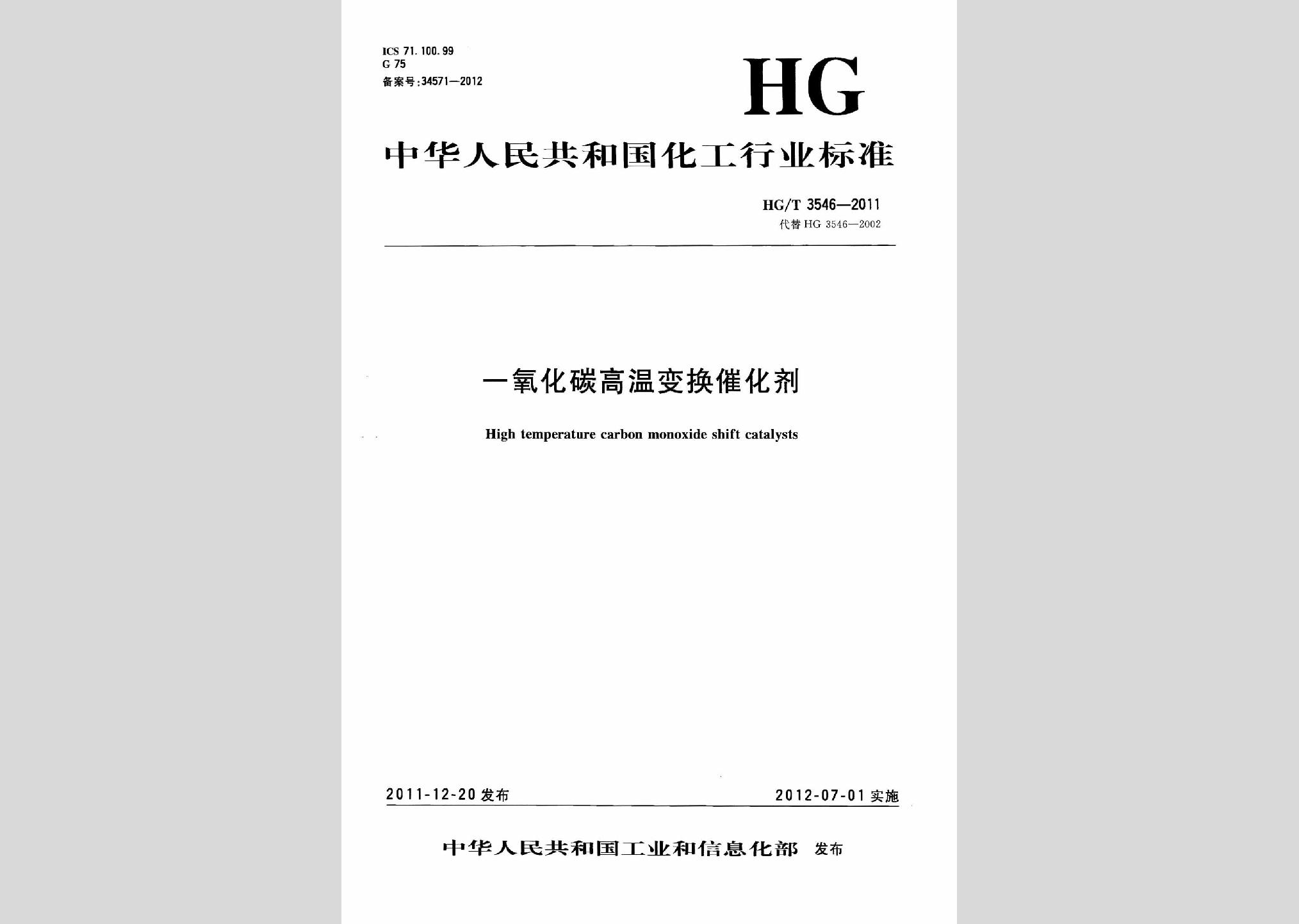 HG/T3546-2011:一氧化碳高温变换催化剂现行