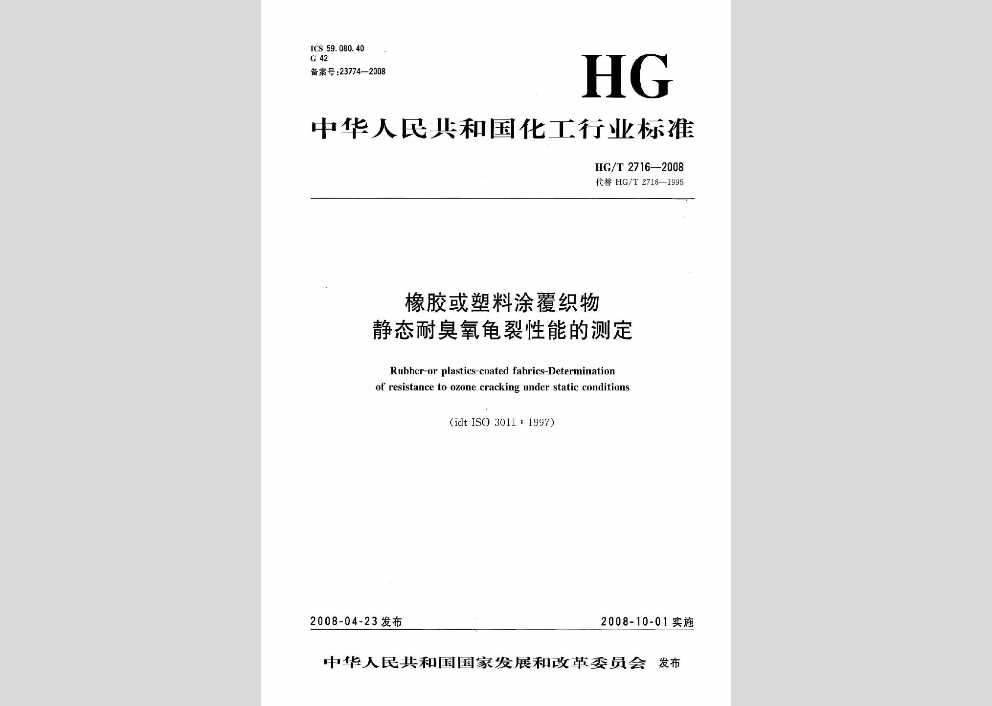 HG/T2716-2008:橡胶或塑料涂覆织物静态耐臭氧龟裂性能的测定现行