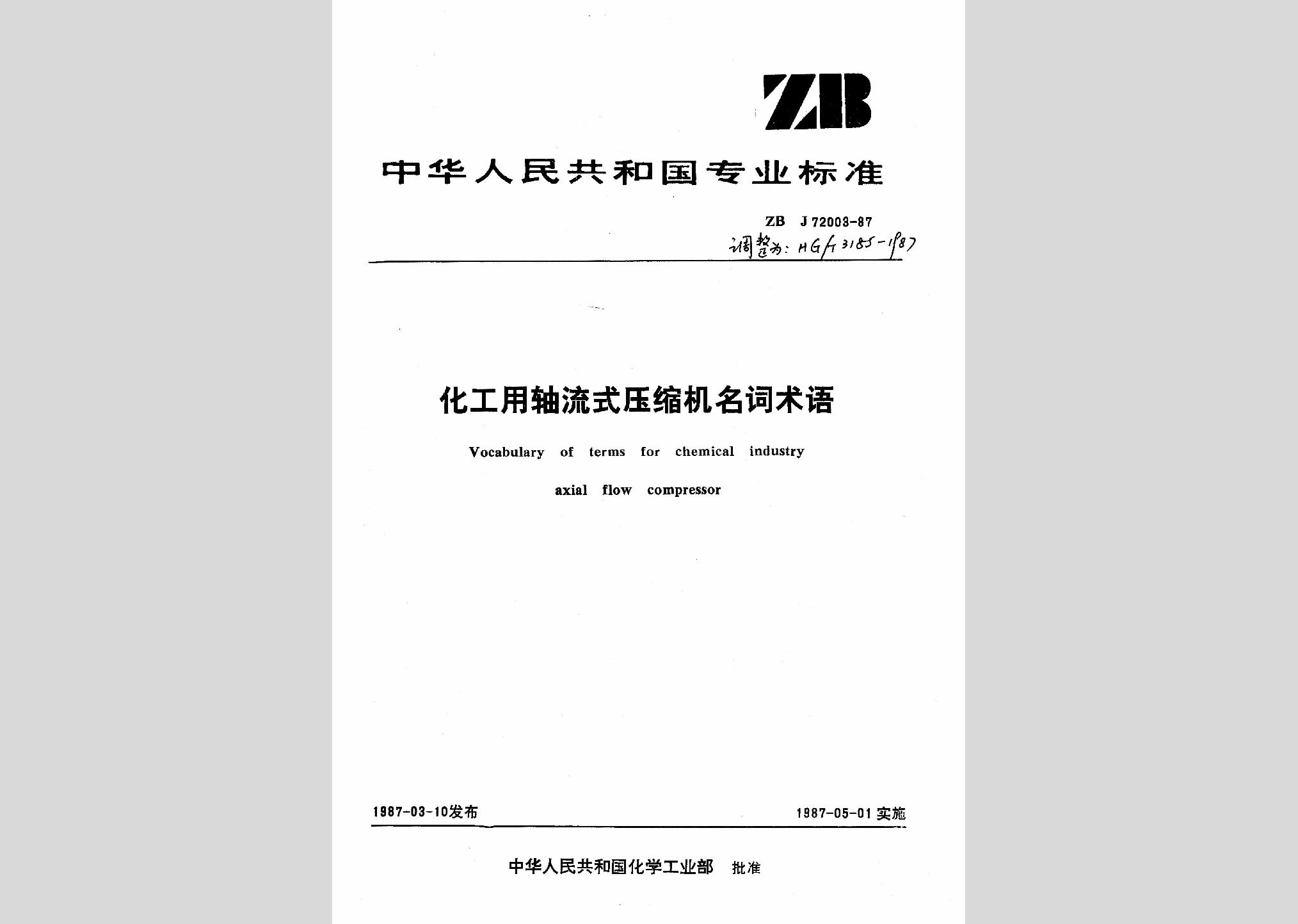 HG/T3185-1987:化工用轴流式压缩机名词术语现行