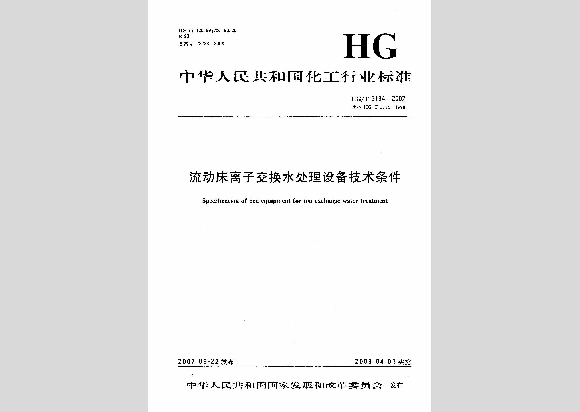 HG/T3134-2007:流动床离子交换水处理设备技术条件现行