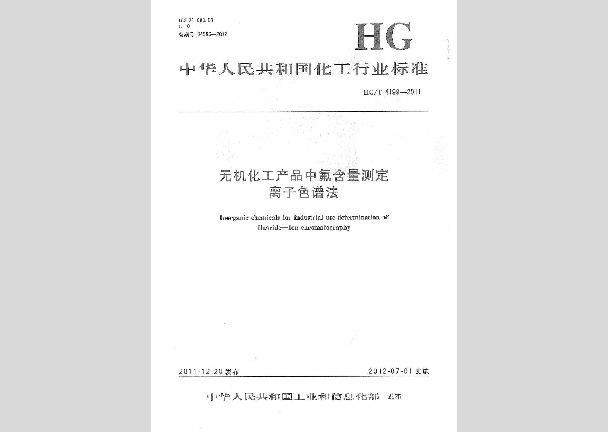 HG/T4199-2011:无机化工产品中氟含量测定离子色谱法现行