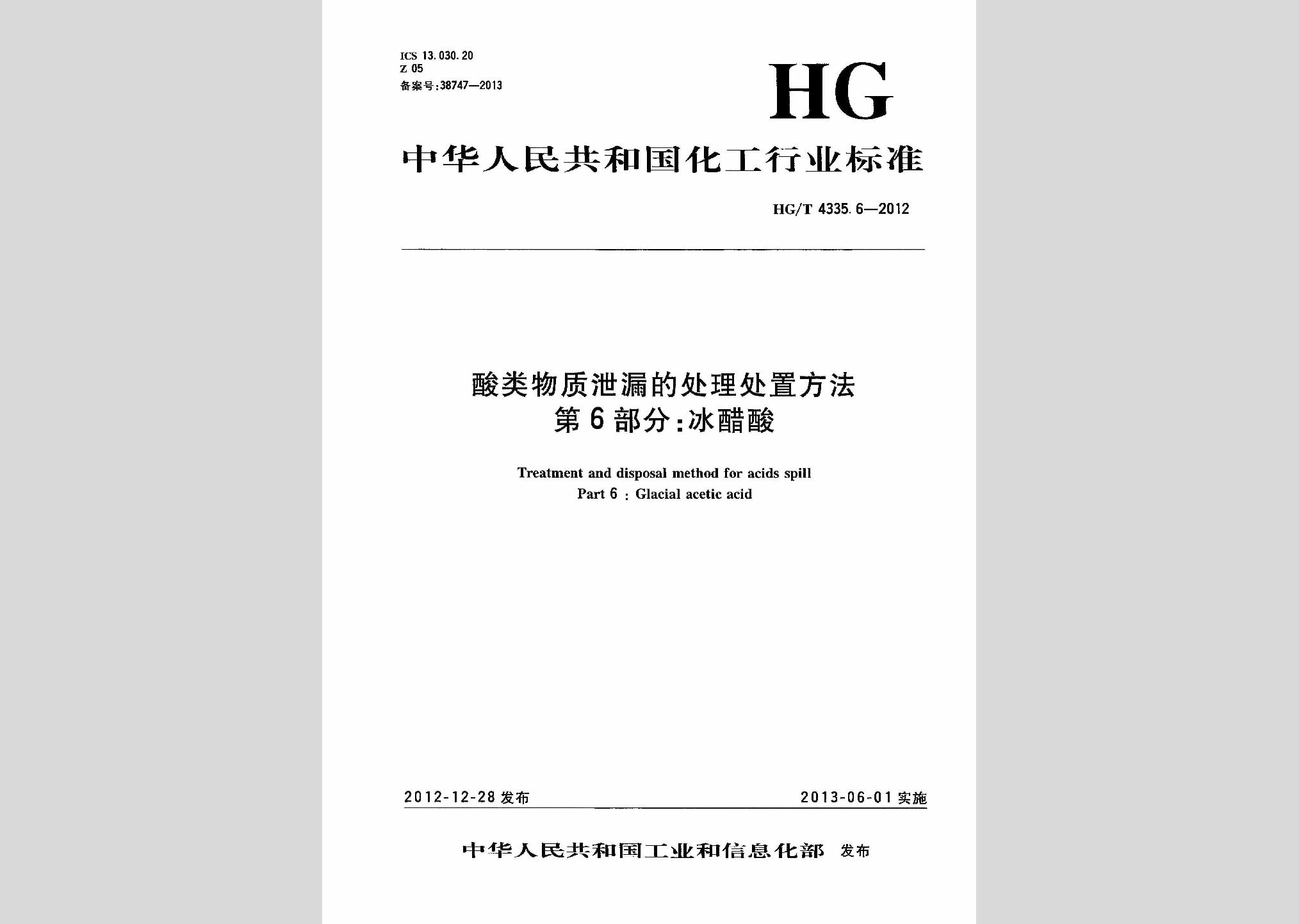 HG/T4335.6-2012:酸类物质泄漏的处理处置方法第6部分:冰醋酸现行