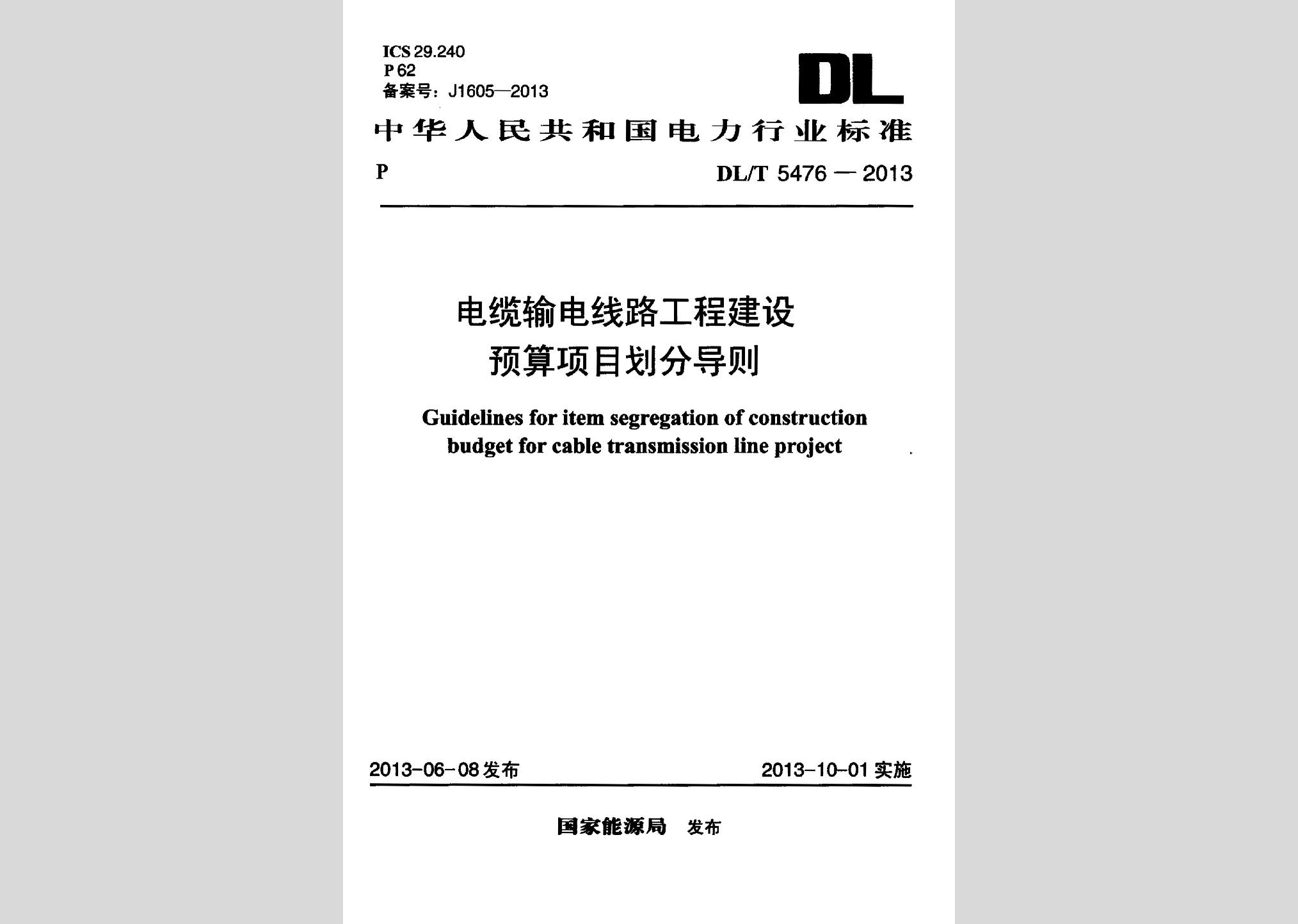 DL/T5476-2013:电缆输电线路工程建设预算项目划分导则废止