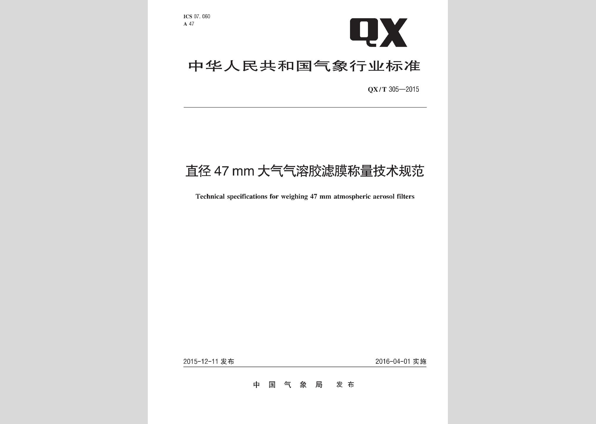 QX/T305-2015:直径47mm大气气溶胶滤膜称量技术规范现行