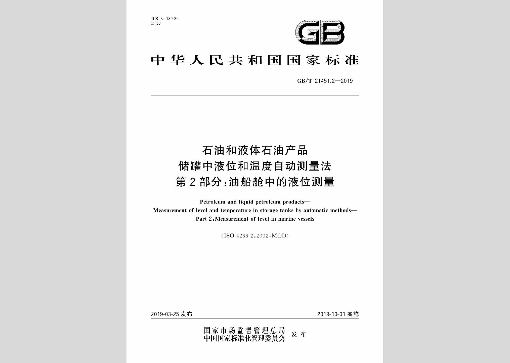 GB/T21451.2-2019:石油和液体石油产品储罐中液位和温度自动测量法第2部分:油船舱中的液位测量现行