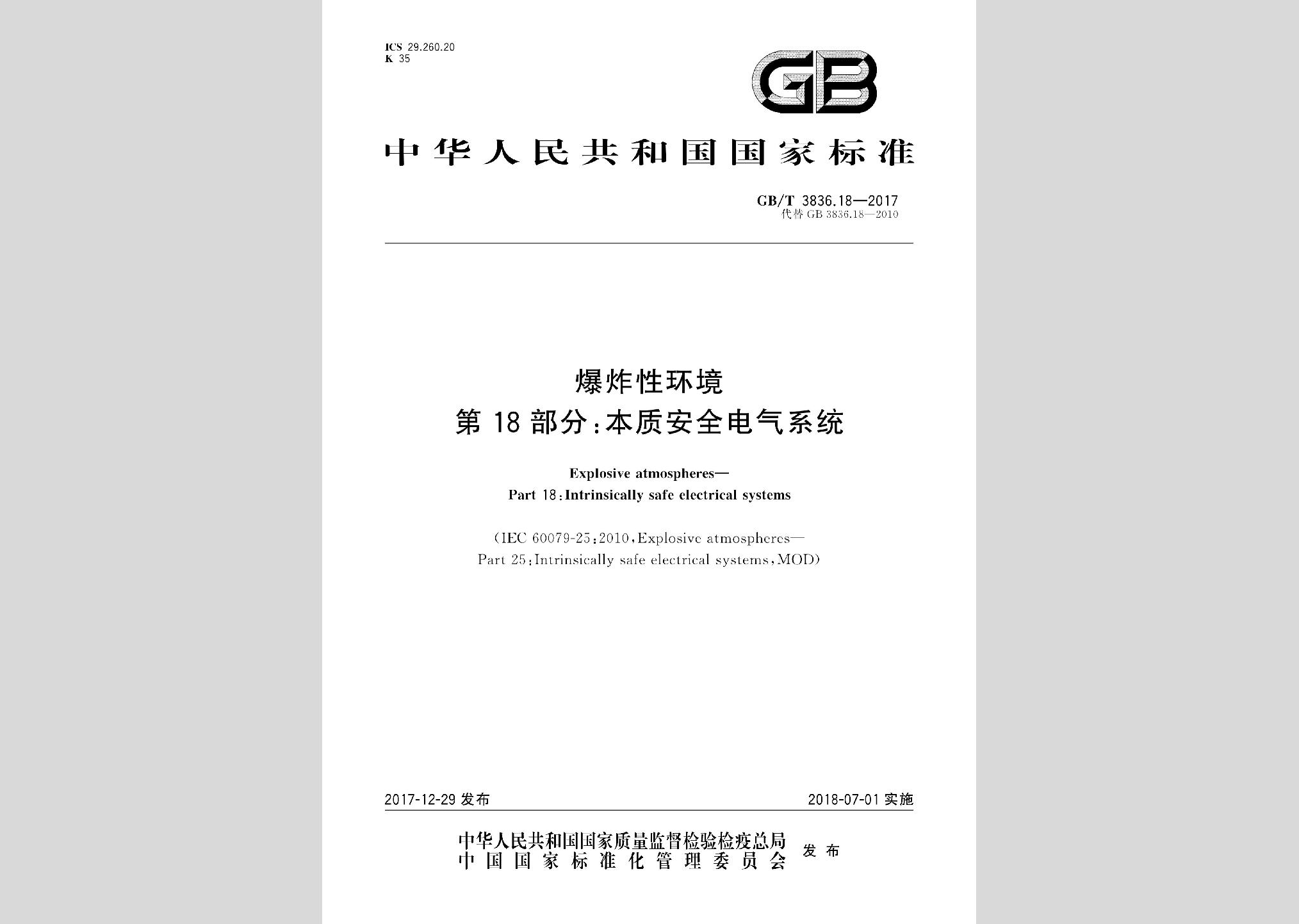 GB/T3836.18-2017:爆炸性环境第18部分:本质安全电气系统现行